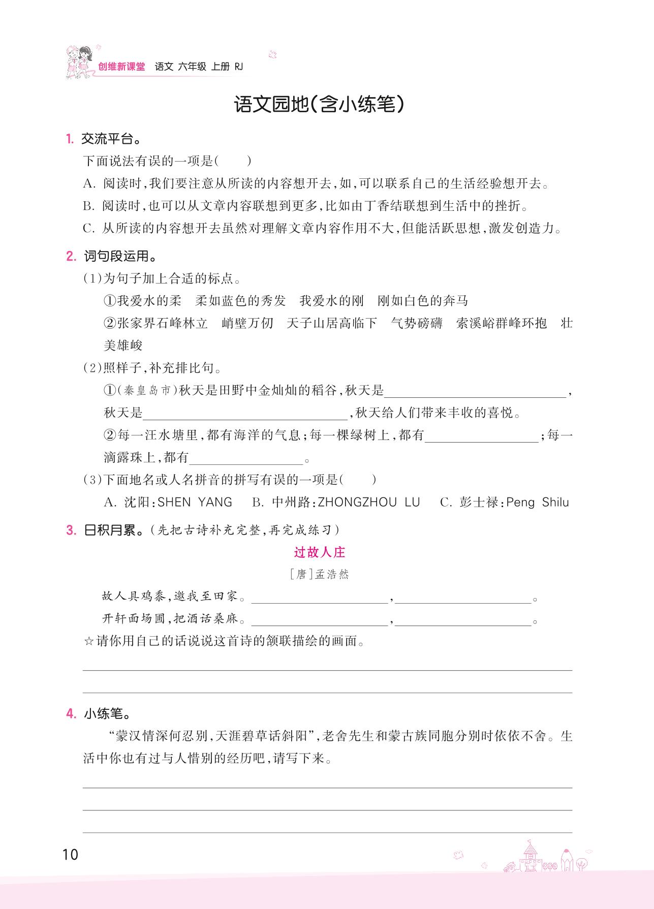 2022上册六年级语文人教版 第一单元——语文园地