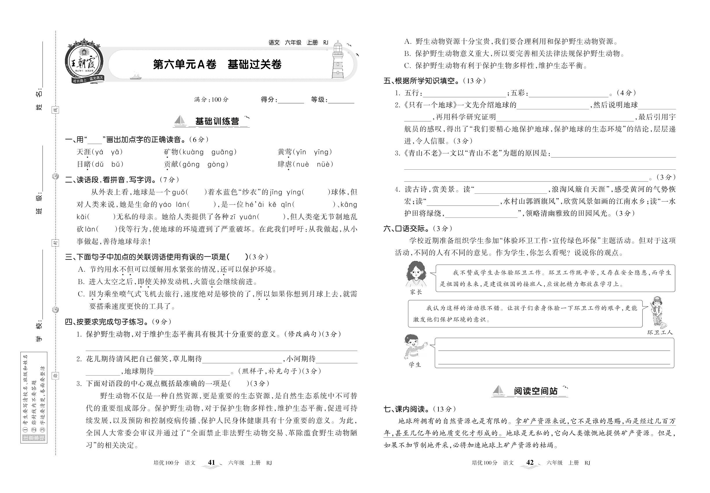 六年级语文人教版上册单元卷