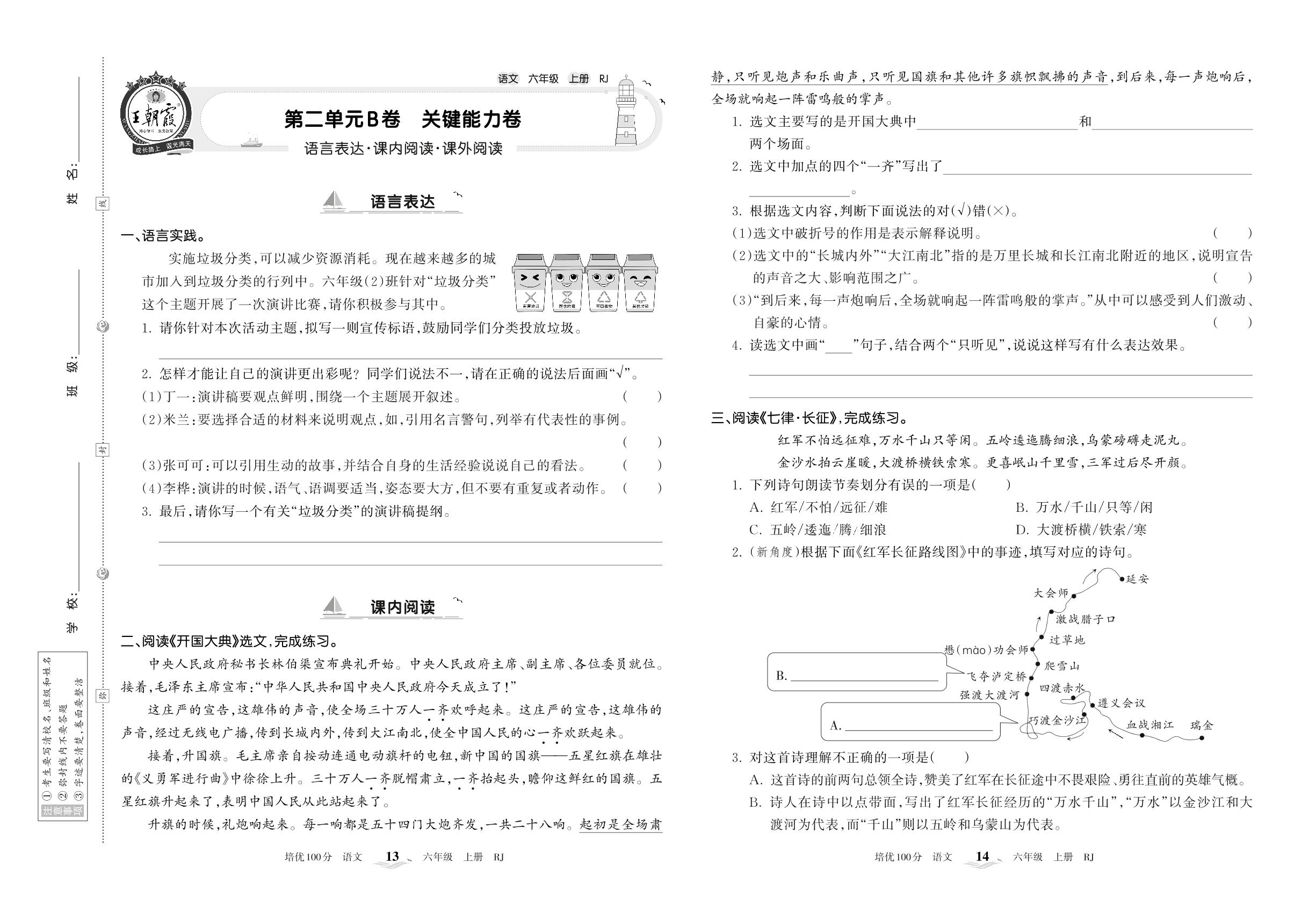 2022上册六年级语文人教版 第二单元B卷 关键能力卷