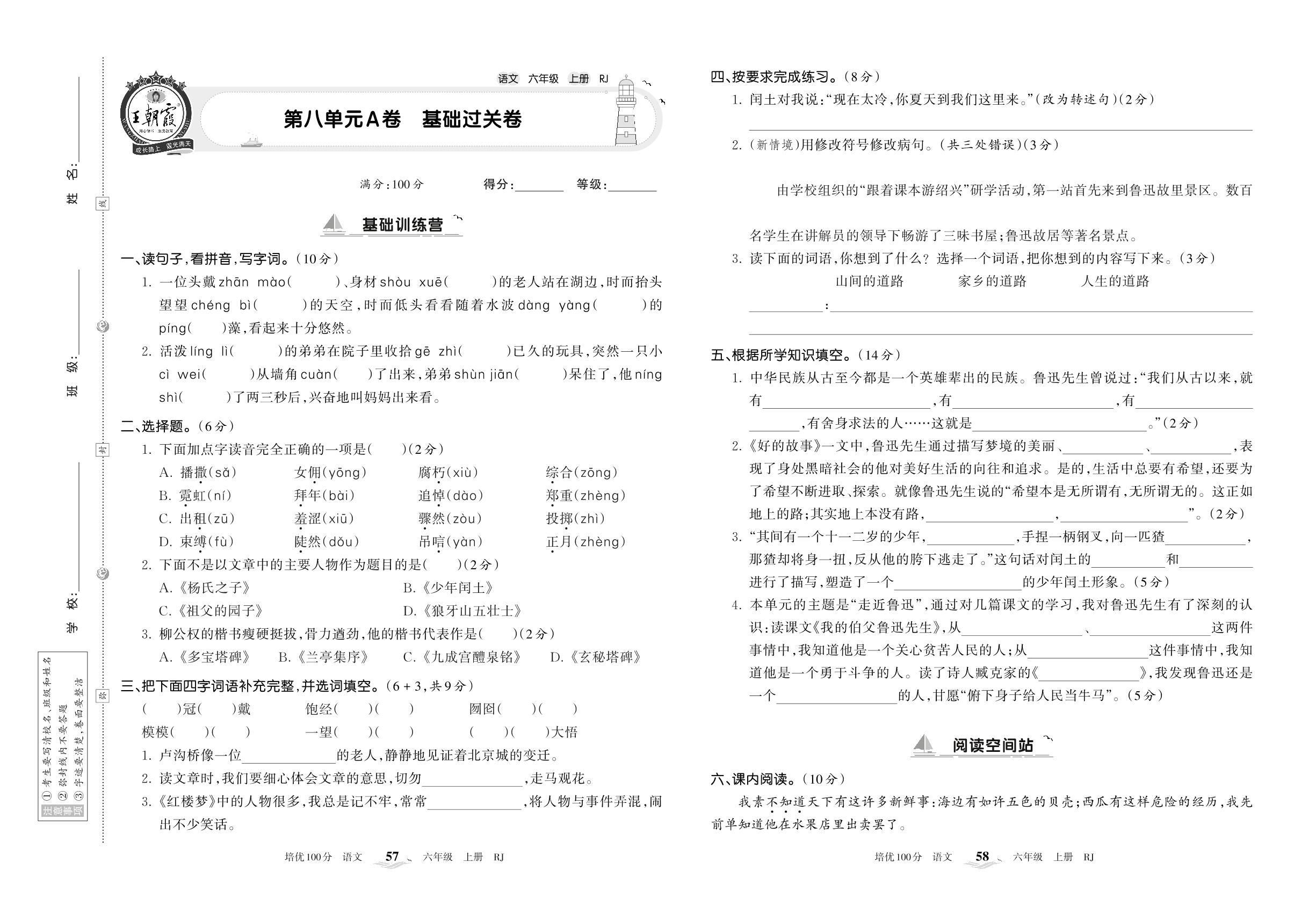六年级语文人教版上册单元卷