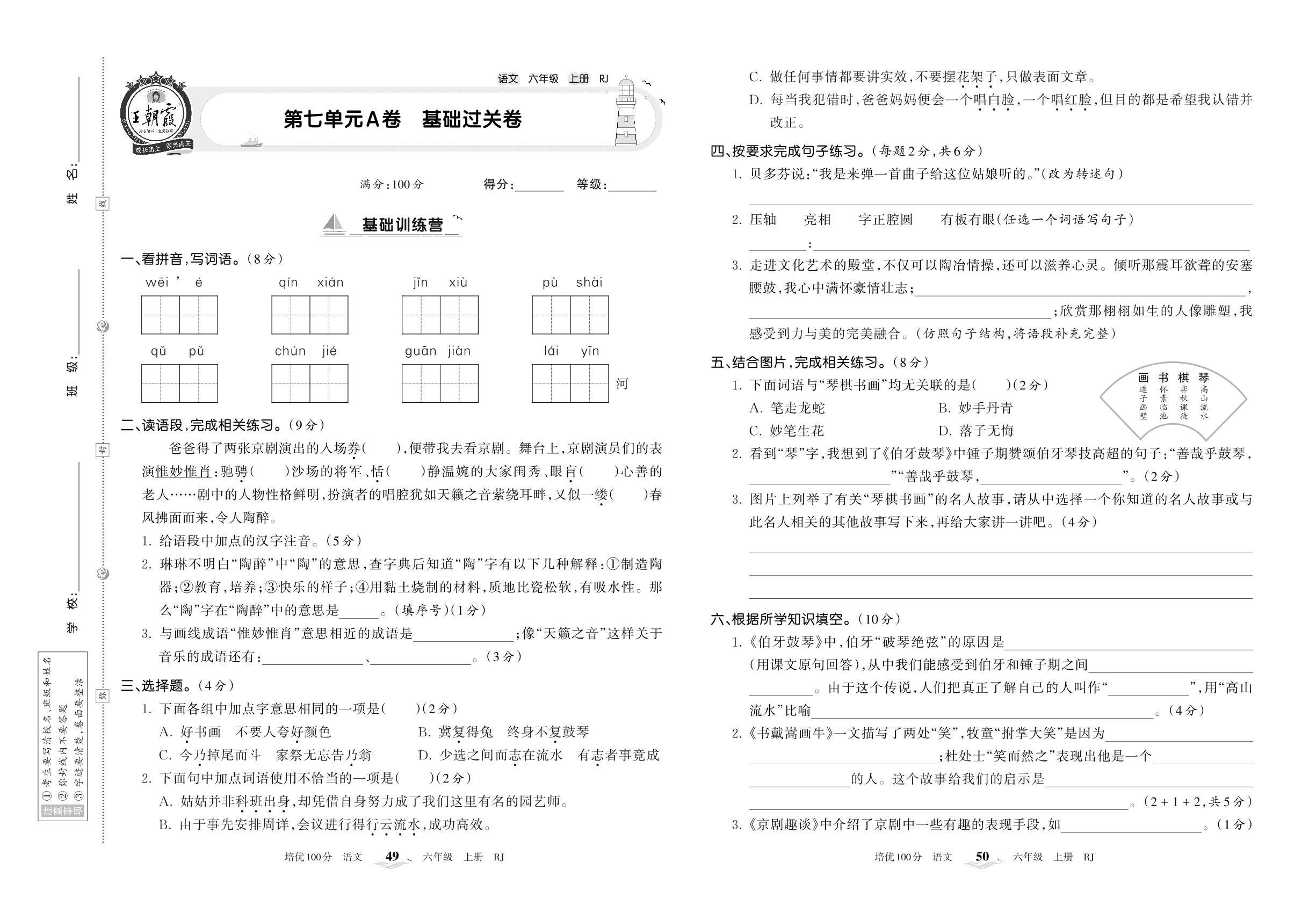 六年级语文人教版上册单元卷