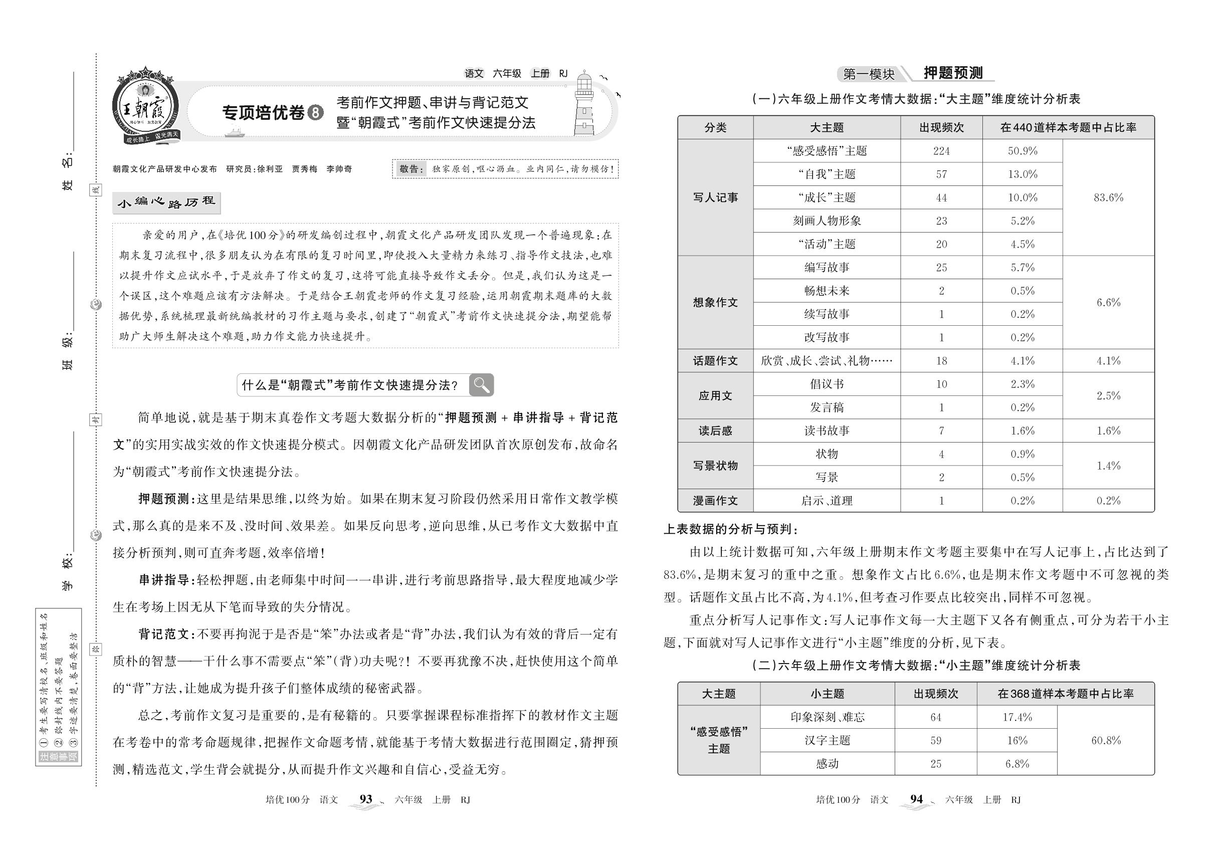 2022上册六年级语文人教版 专项培优卷8 考前作文押题、串讲与背记范文暨“朝霞式”考前作文快速提分法