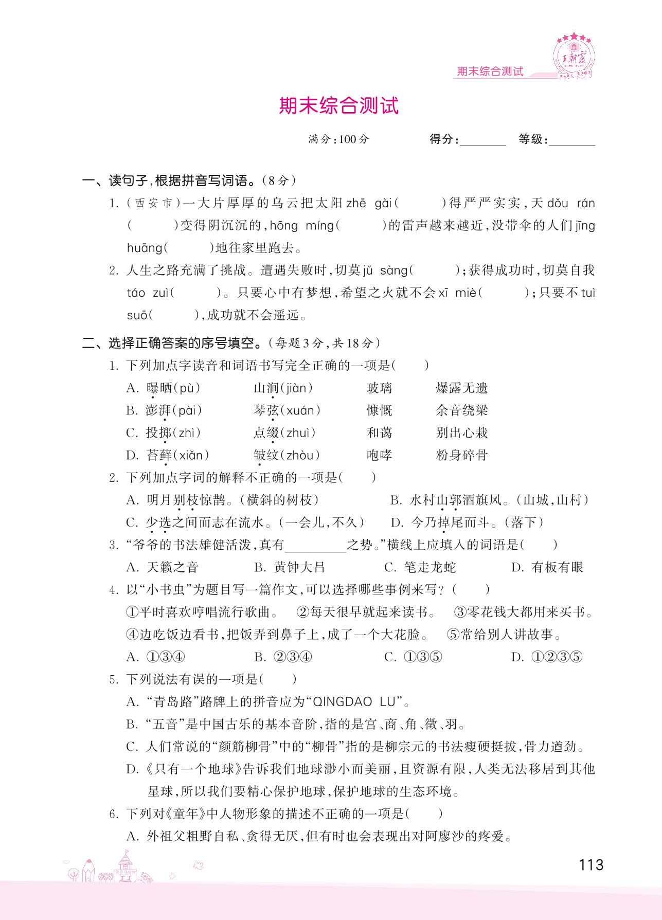 2022上册六年级语文人教版 期末综合测试