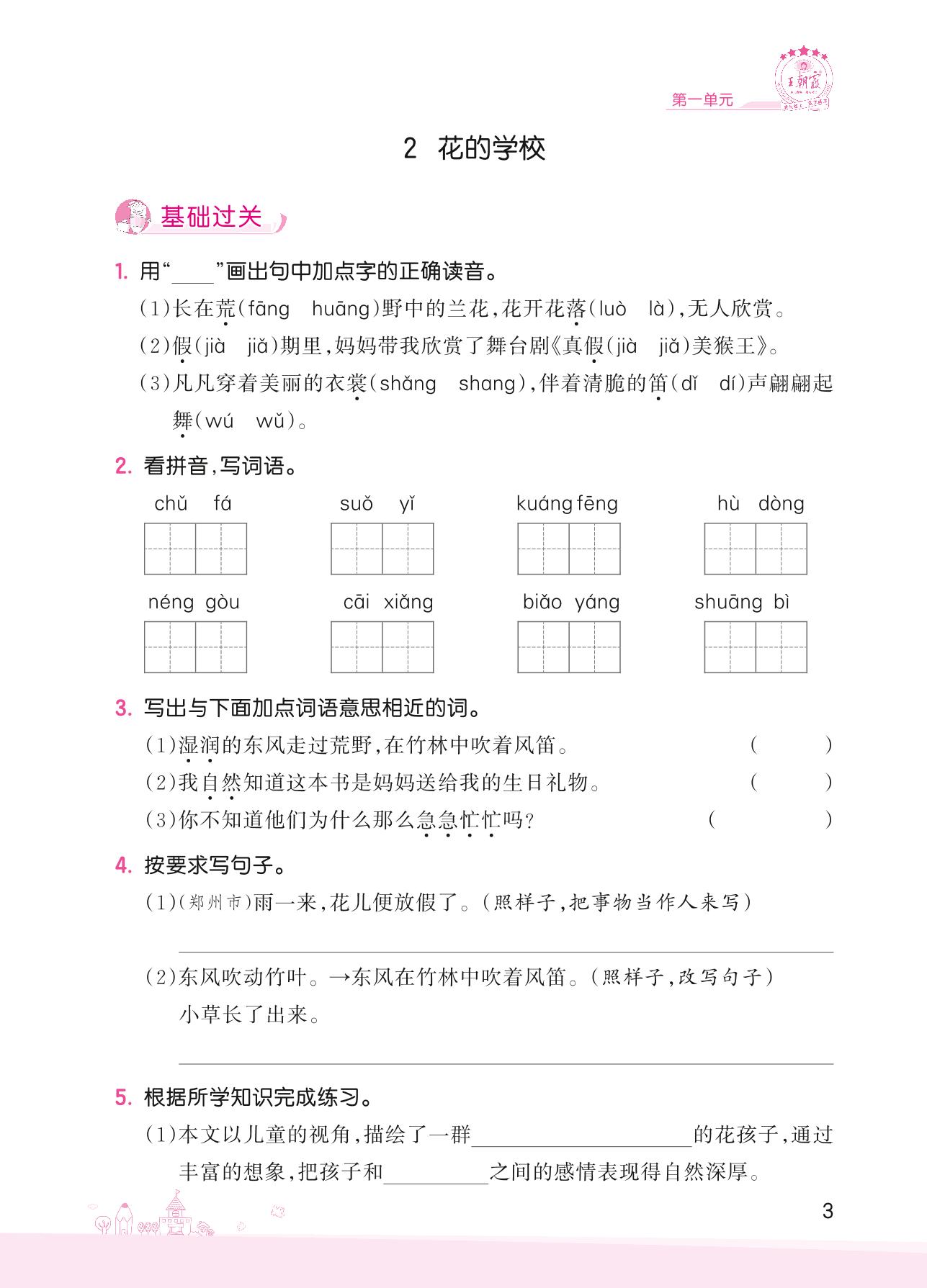 2022上册三年级语文人教版 第一单元——2 花的学校