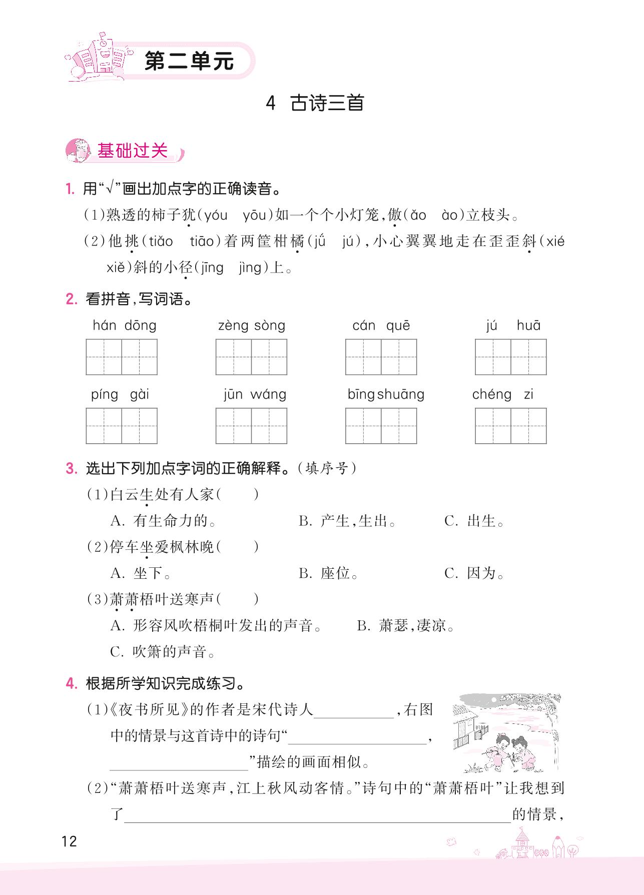 2022上册三年级语文人教版 第二单元——4 古诗三首