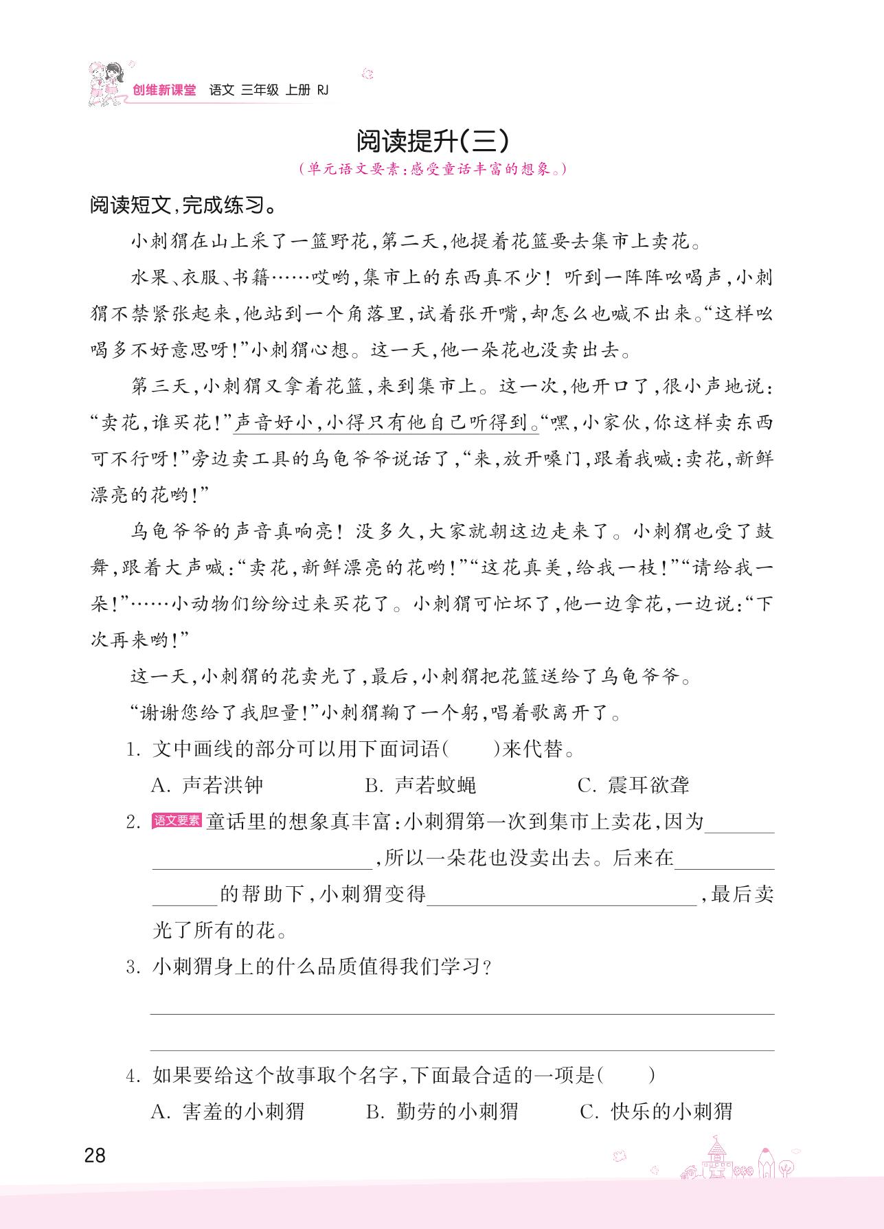 2022上册三年级语文人教版 第三单元——阅读提升(三)