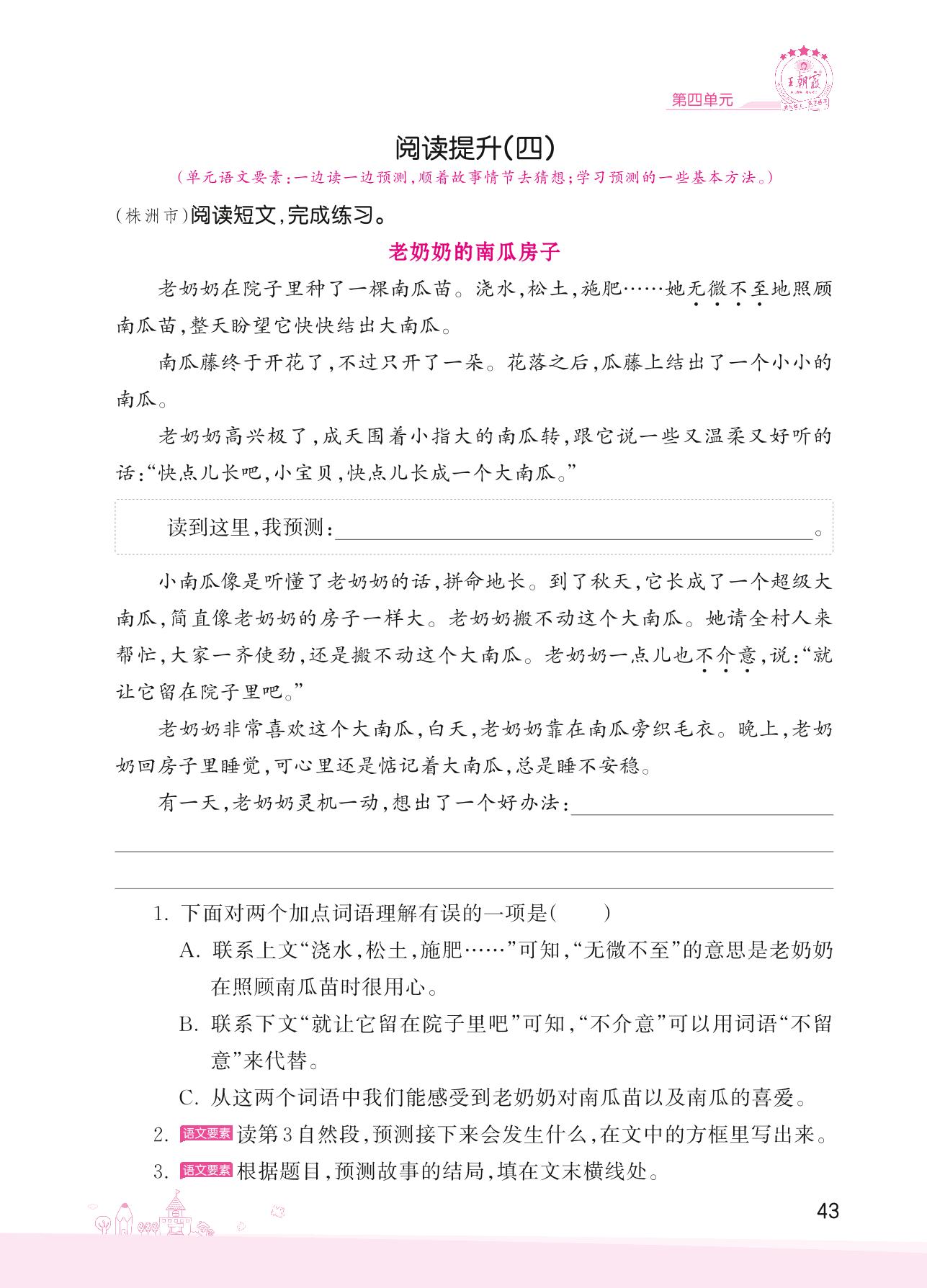 2022上册三年级语文人教版 第四单元——阅读提升(四)