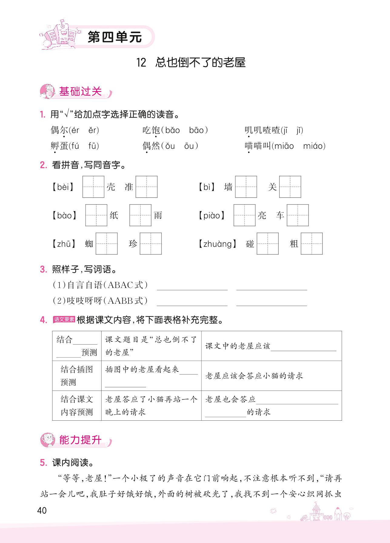 2022上册三年级语文人教版 第四单元——12 总也倒不了的老屋