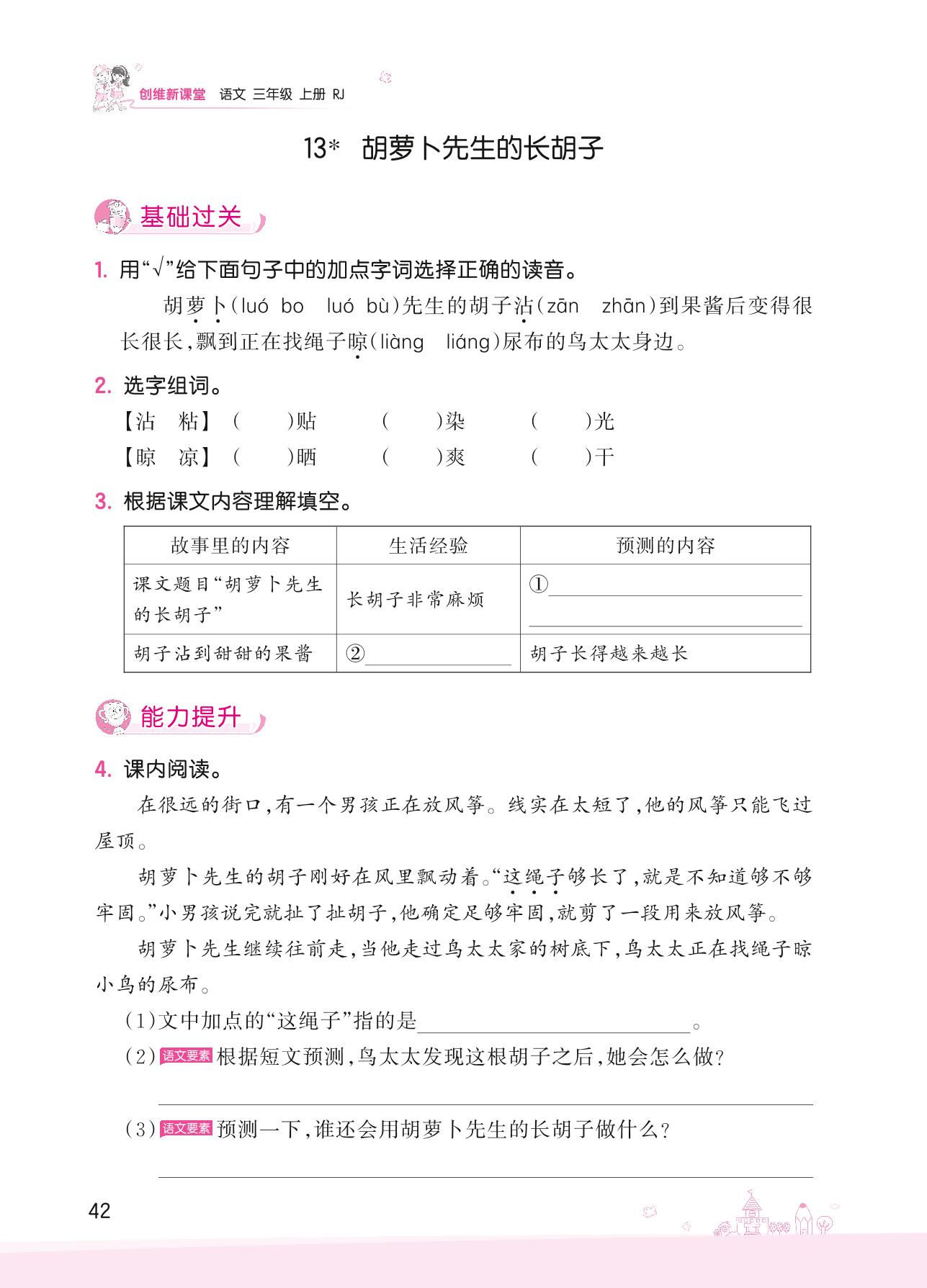 2022上册三年级语文人教版 第四单元——13 胡萝卜先生的长胡子