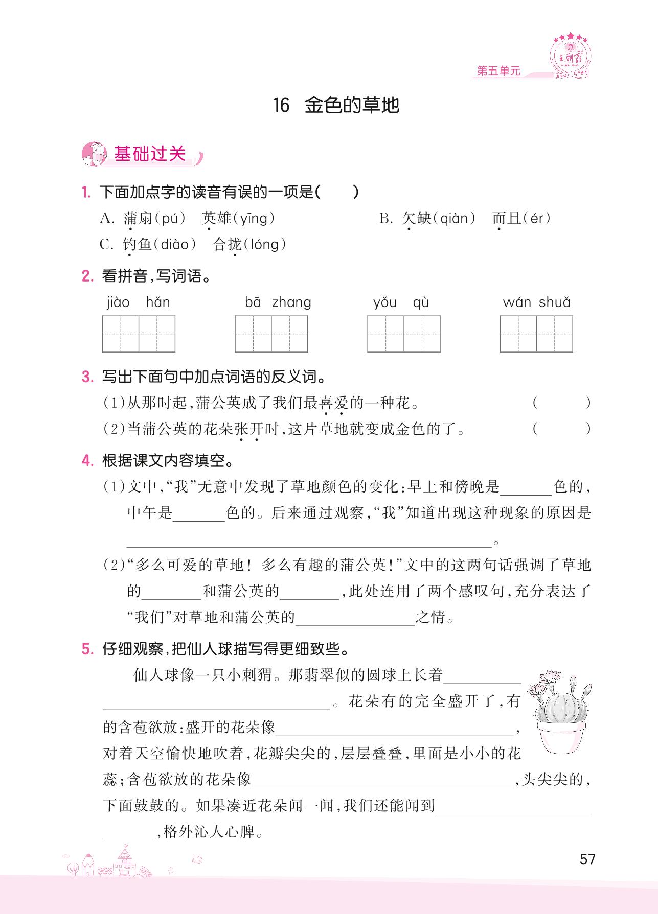 2022上册三年级语文人教版 第五单元——16 金色的草地