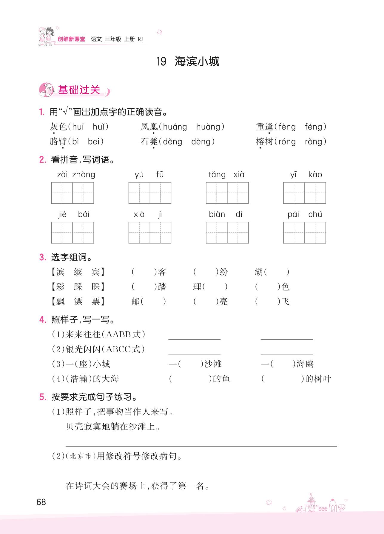 2022上册三年级语文人教版 第六单元——19 海滨小城