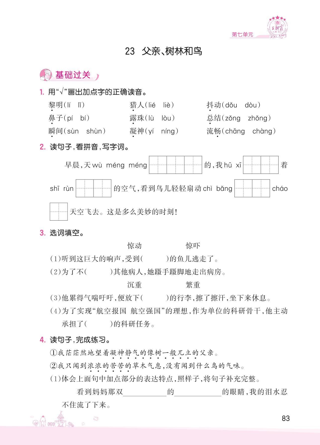 2022上册三年级语文人教版 第七单元——23 父亲、树林和鸟