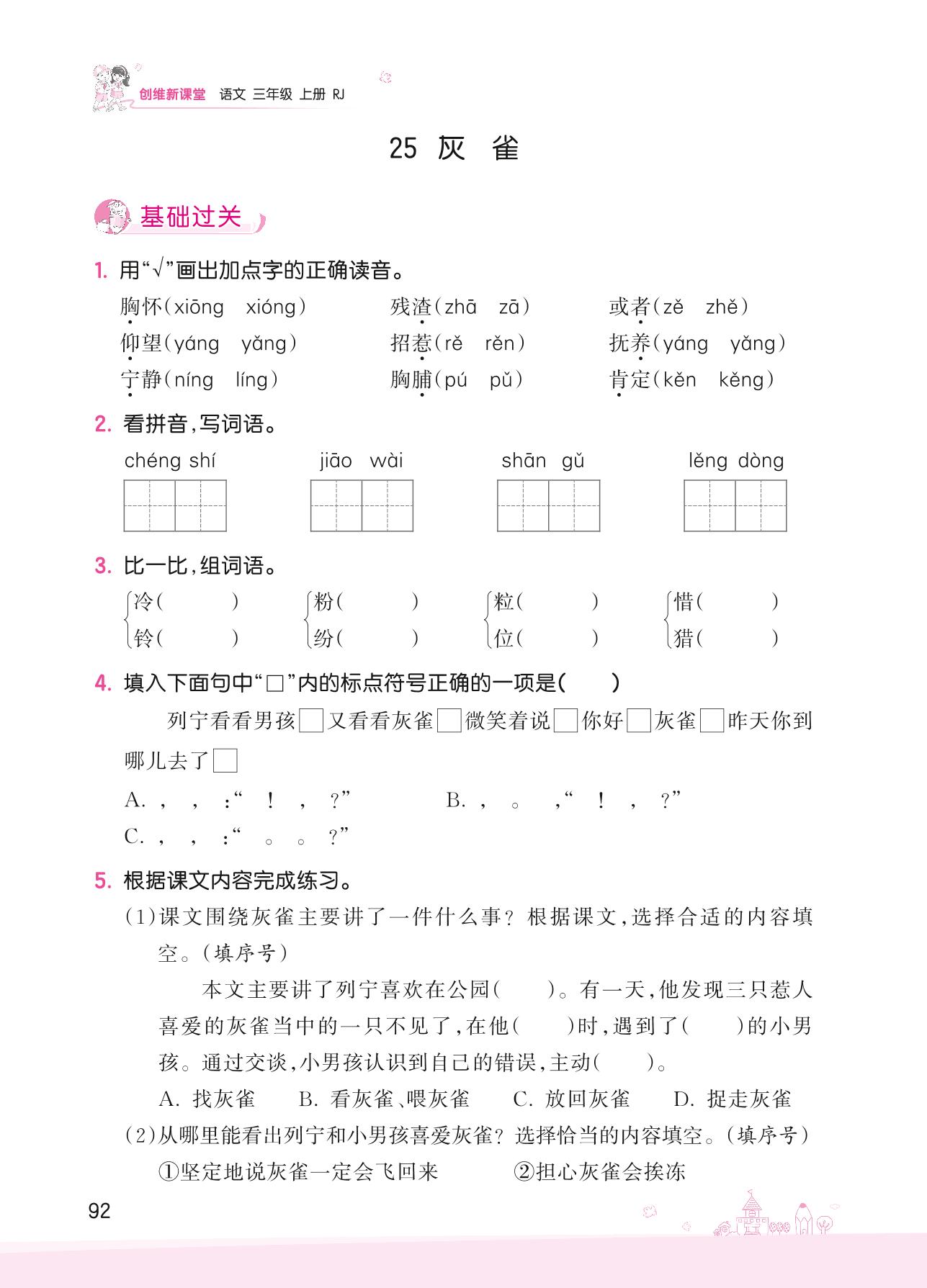 2022上册三年级语文人教版 2022上册三年级语文人教版 第八单元——25 灰雀