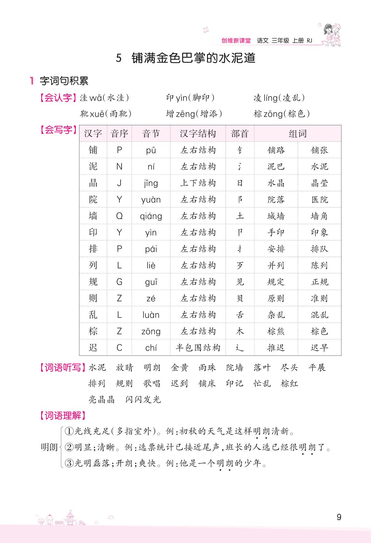 2022上册三年级语文人教版 第二单元——5 铺满金色巴掌的水泥道