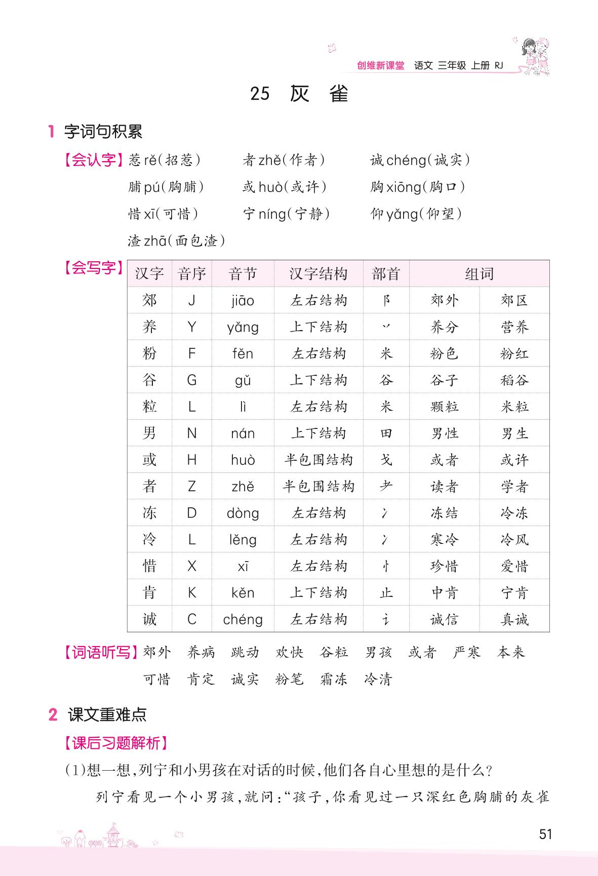2022上册三年级语文人教版 第八单元——25 灰雀