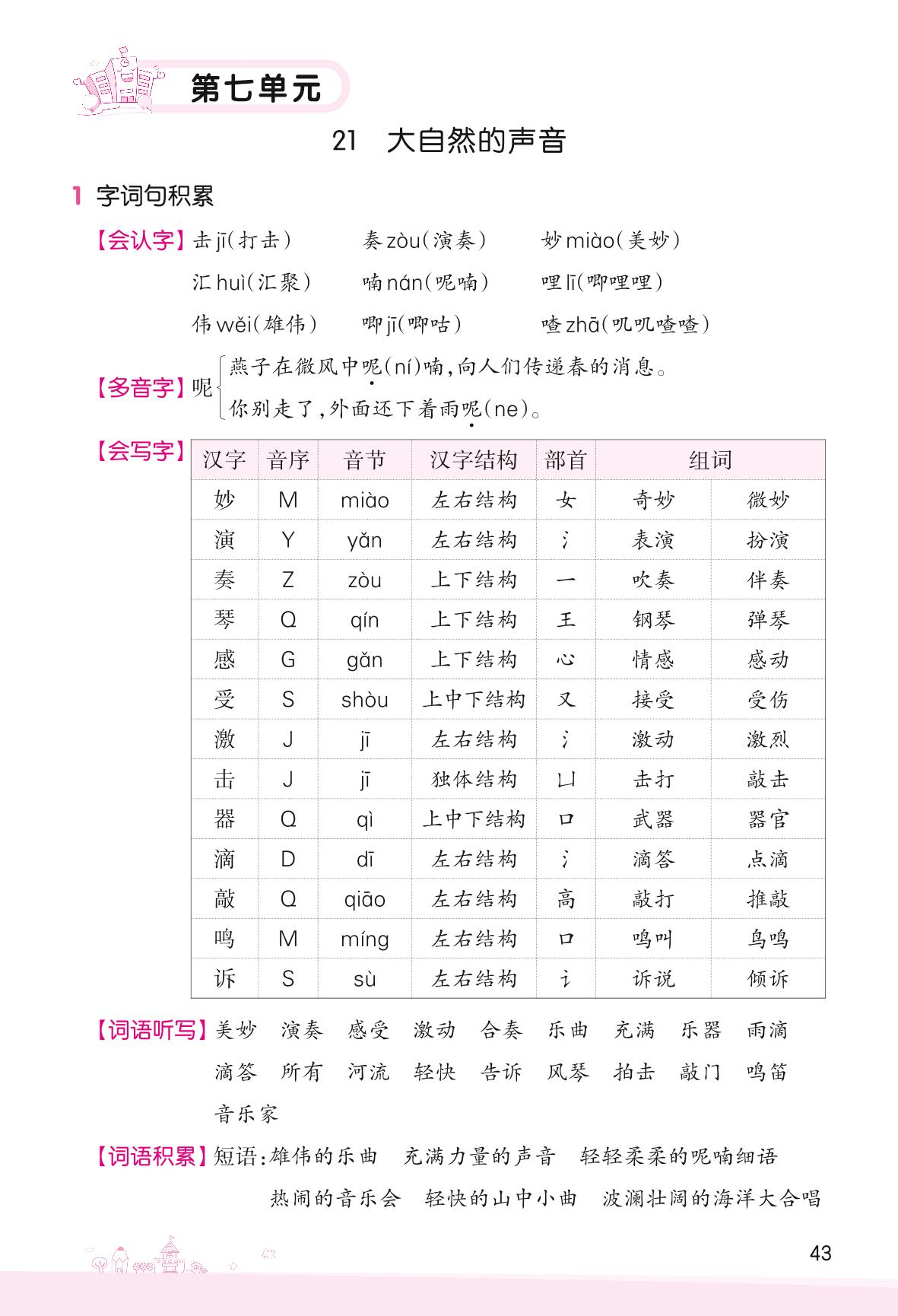 2022上册三年级语文人教版 第七单元——21 大自然的声音
