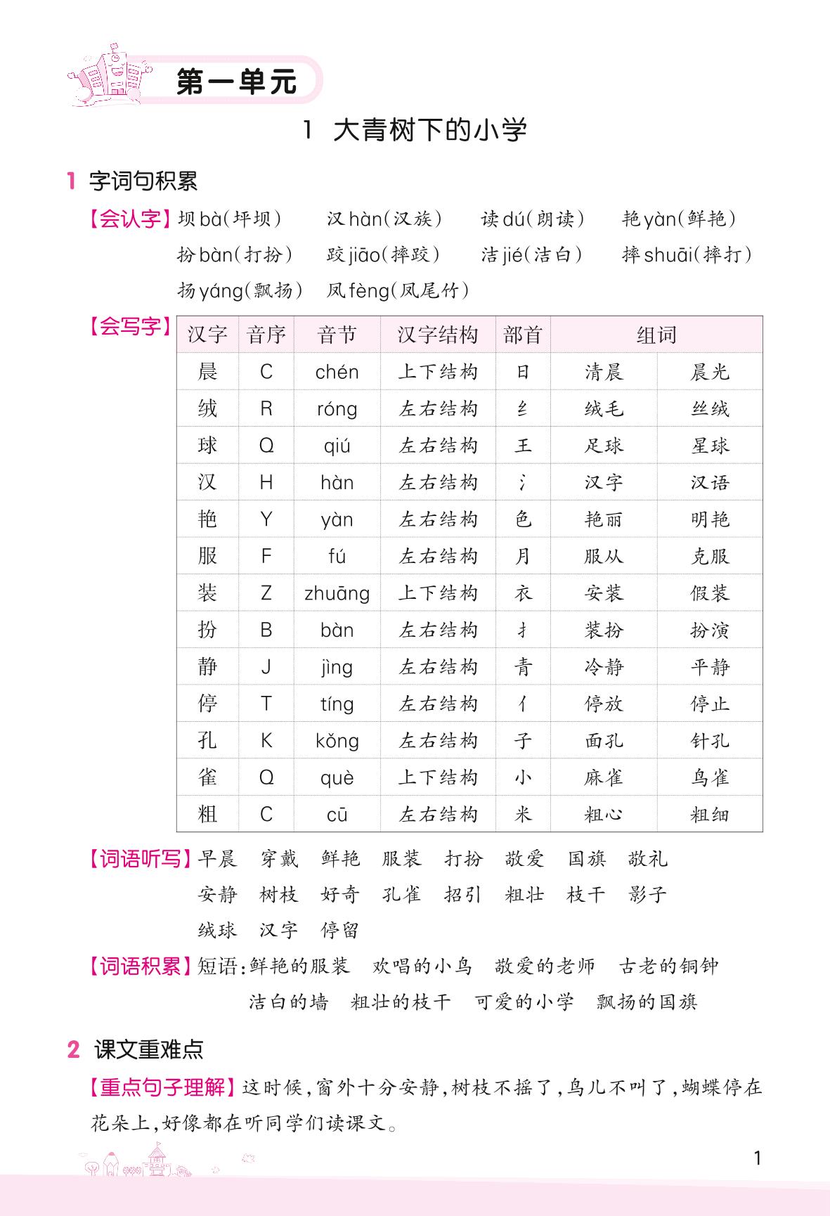 2022上册三年级语文人教版 第一单元——1 大青树下的小学