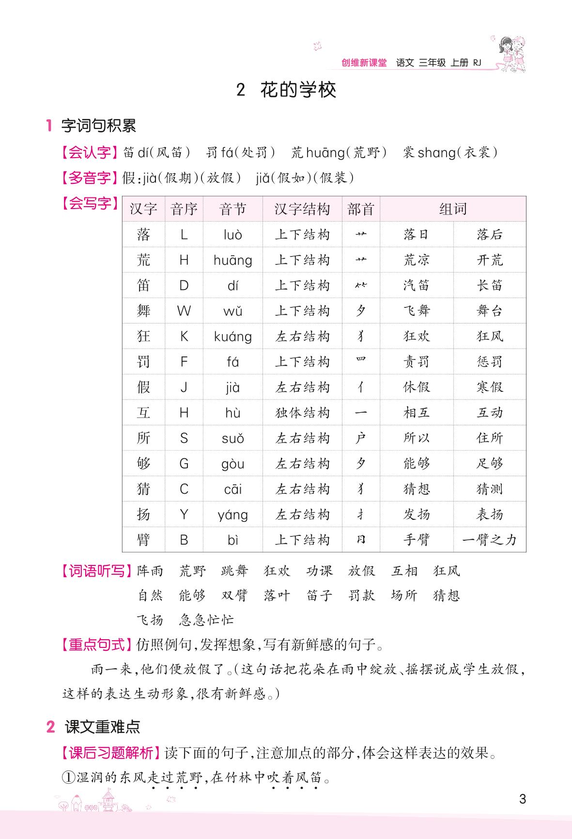 2022上册三年级语文人教版 第一单元——2 花的学校