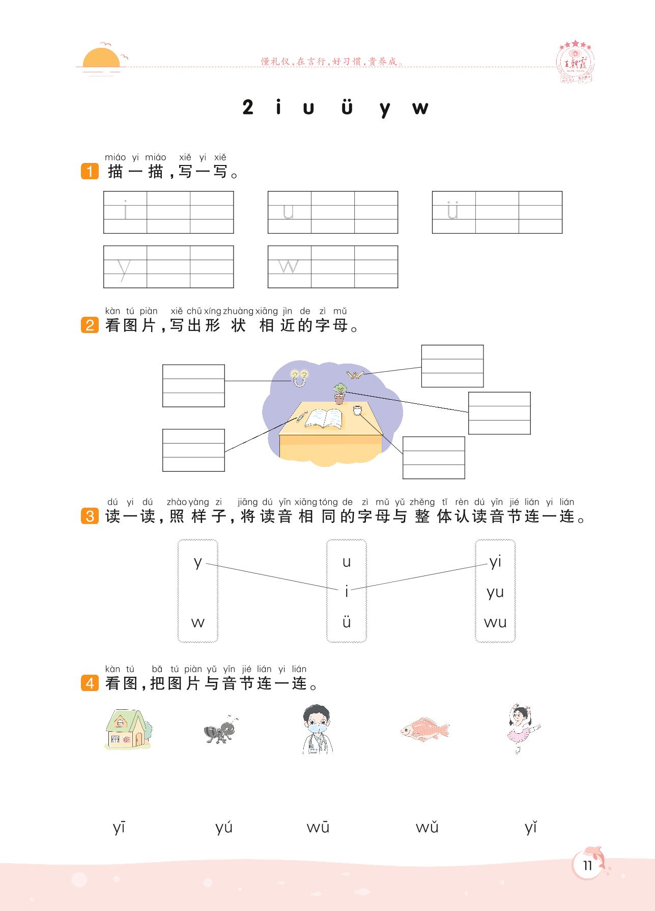 2022上册一年级语文人教版 第二单元 汉语拼音——2 i u ü y w