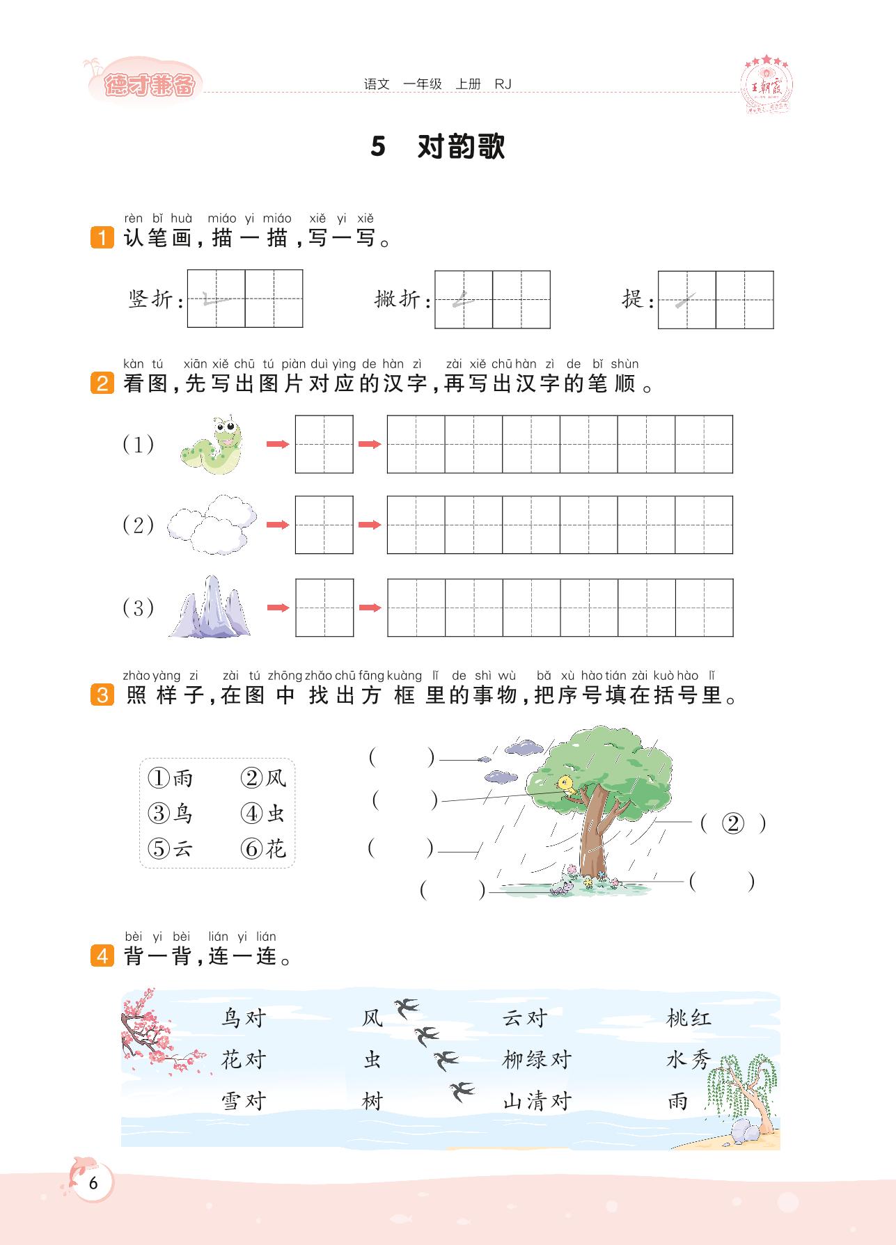2022上册一年级语文人教版 第一单元 识字——5 对韵歌