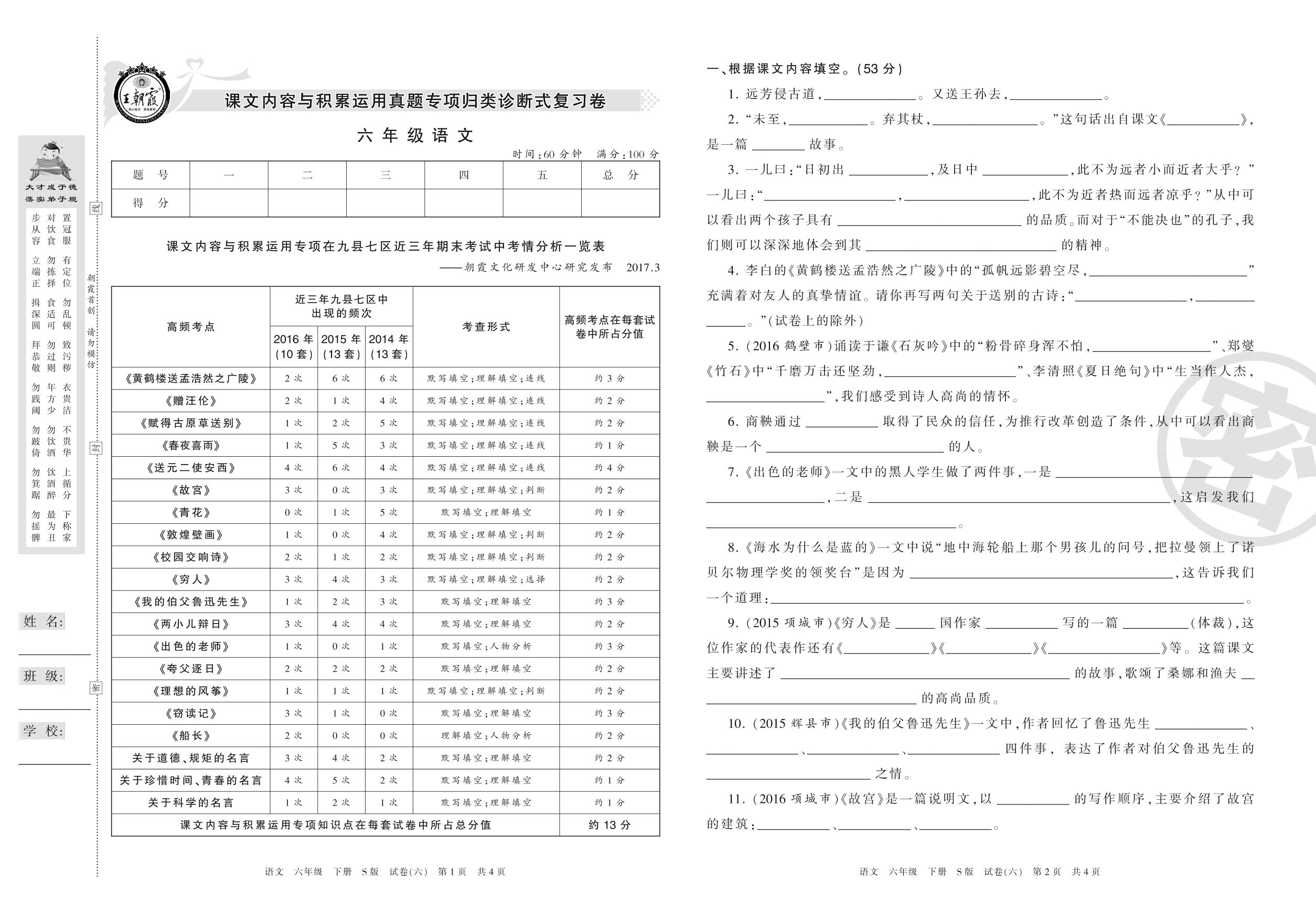 王朝霞期末专项卷六年级下册语文(S版)_R21080253436【6】