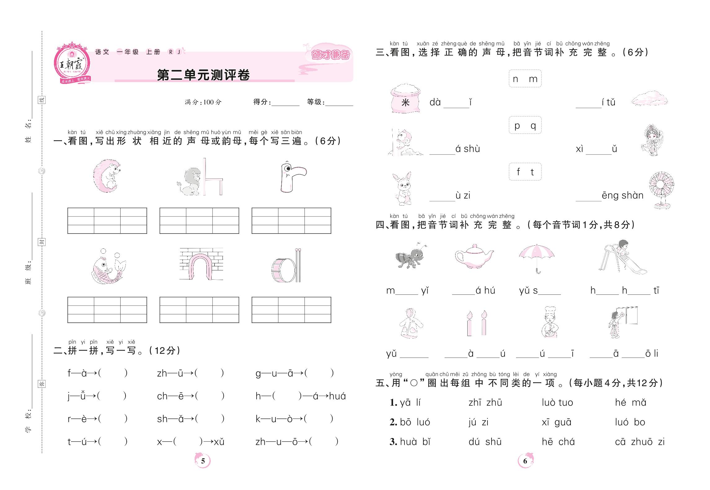 一年级语文人教版上册单元卷