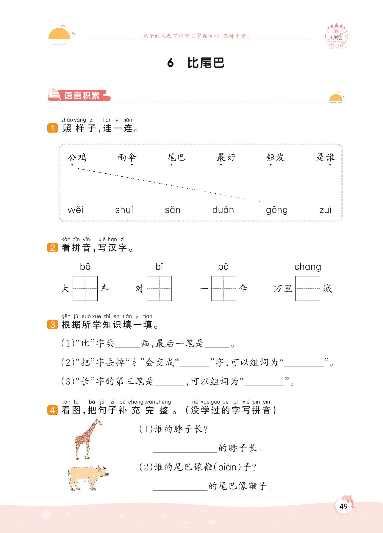 2022上册一年级语文人教版 第六单元 想象——6 比尾巴