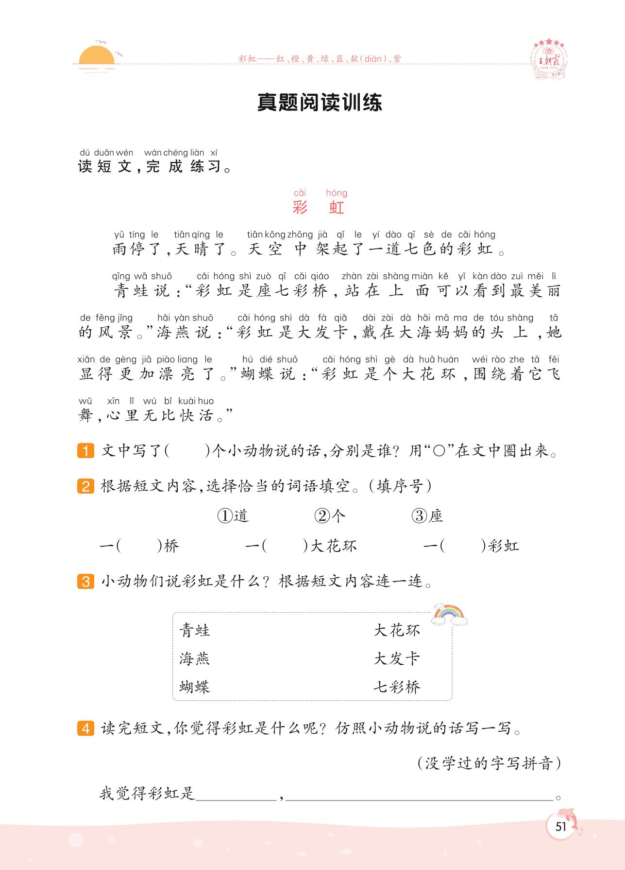 2022上册一年级语文人教版 第六单元 想象——真题阅读训练(阅读提升)