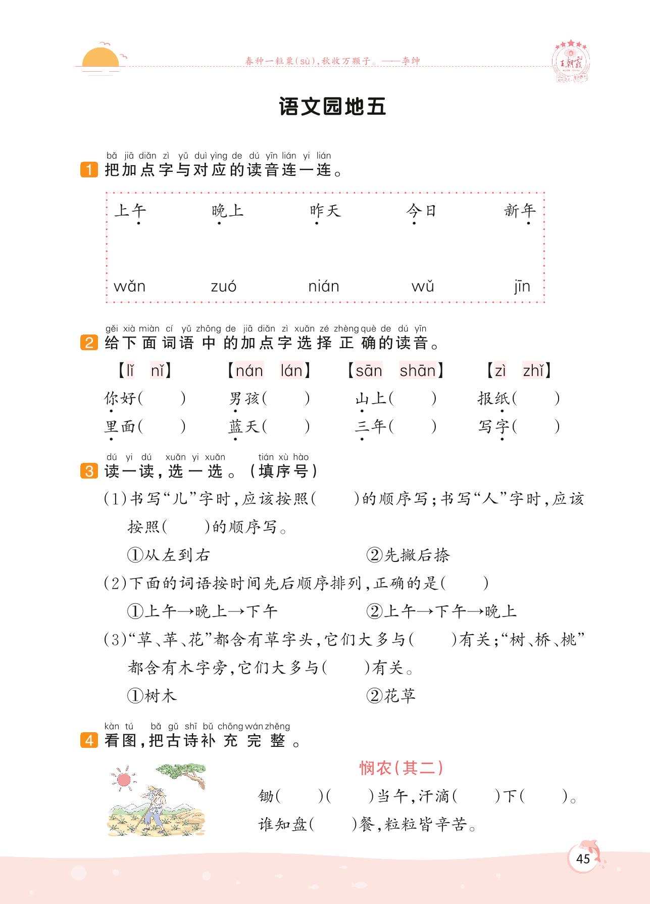 2022上册一年级语文人教版 第五单元 识字——语文园地五