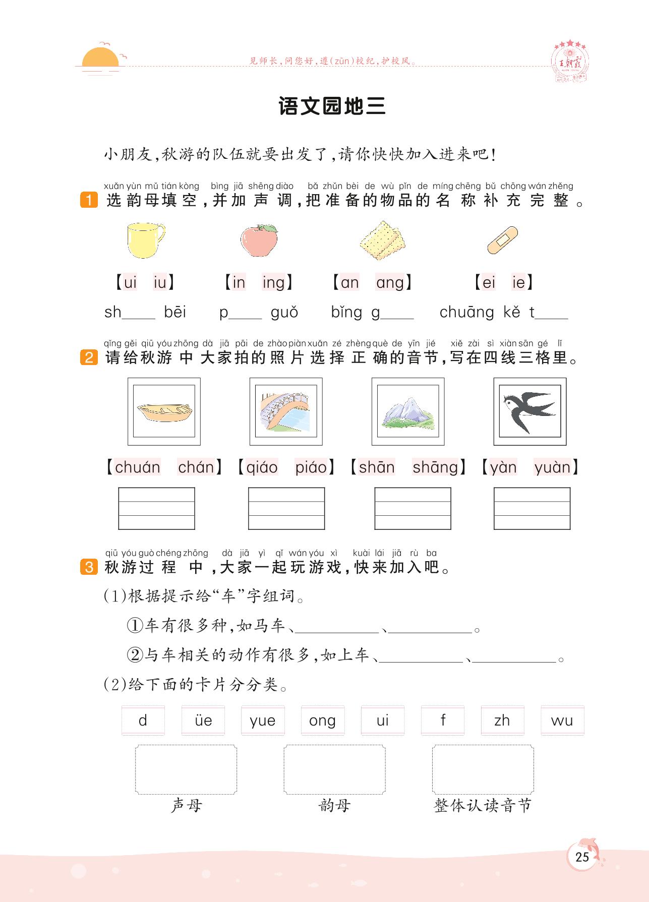 2022上册一年级语文人教版 第三单元 汉语拼音——语文园地三