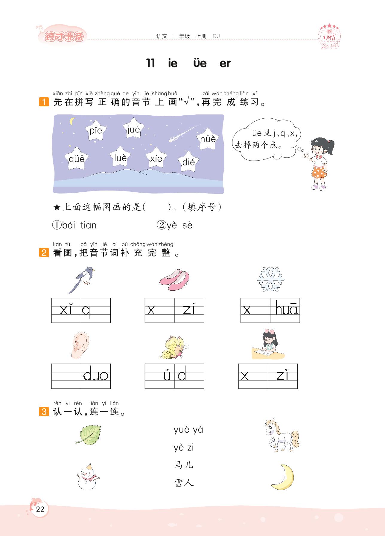2022上册一年级语文人教版 第三单元 汉语拼音——11 ie üe er