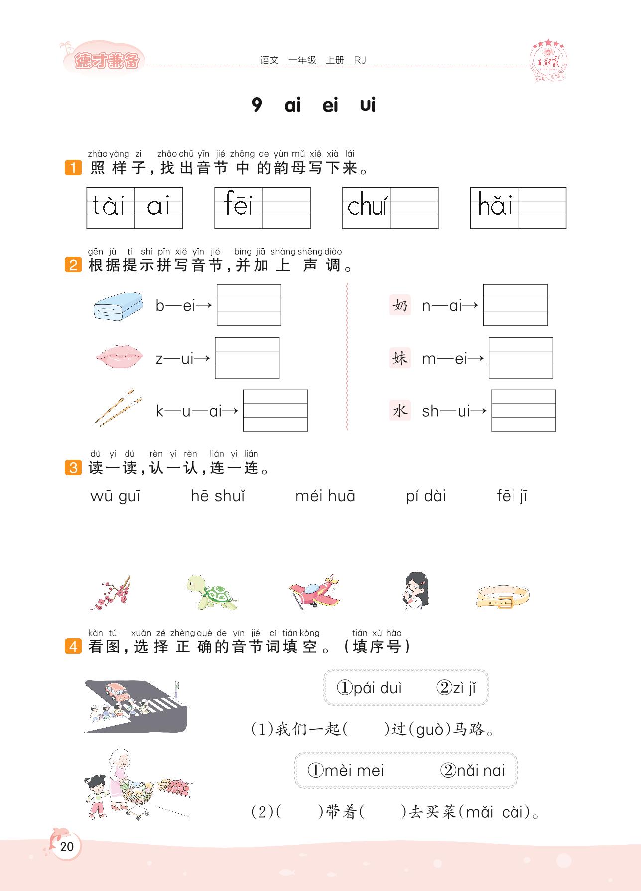 2022上册一年级语文人教版 第三单元 汉语拼音——9 ɑi ei ui