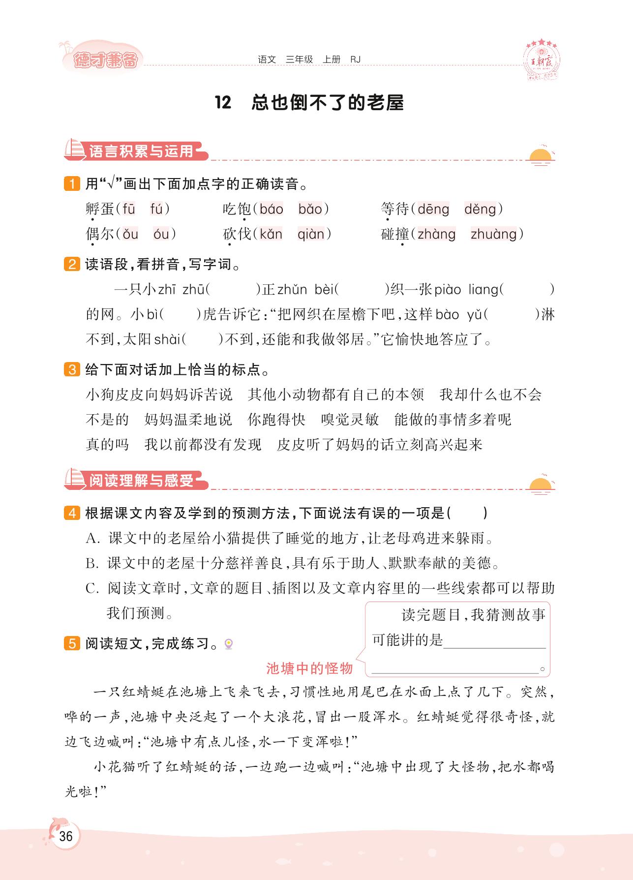 2022上册三年级语文人教版 第四单元 阅读策略 预测——12 总也倒不了的老屋