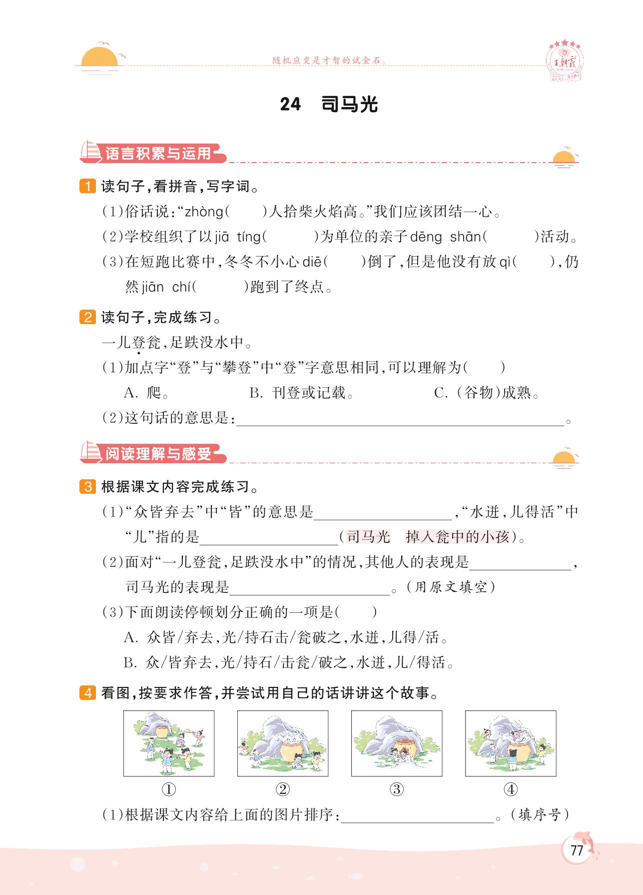 2022上册三年级语文人教版 第八单元 美好品质——24 司马光