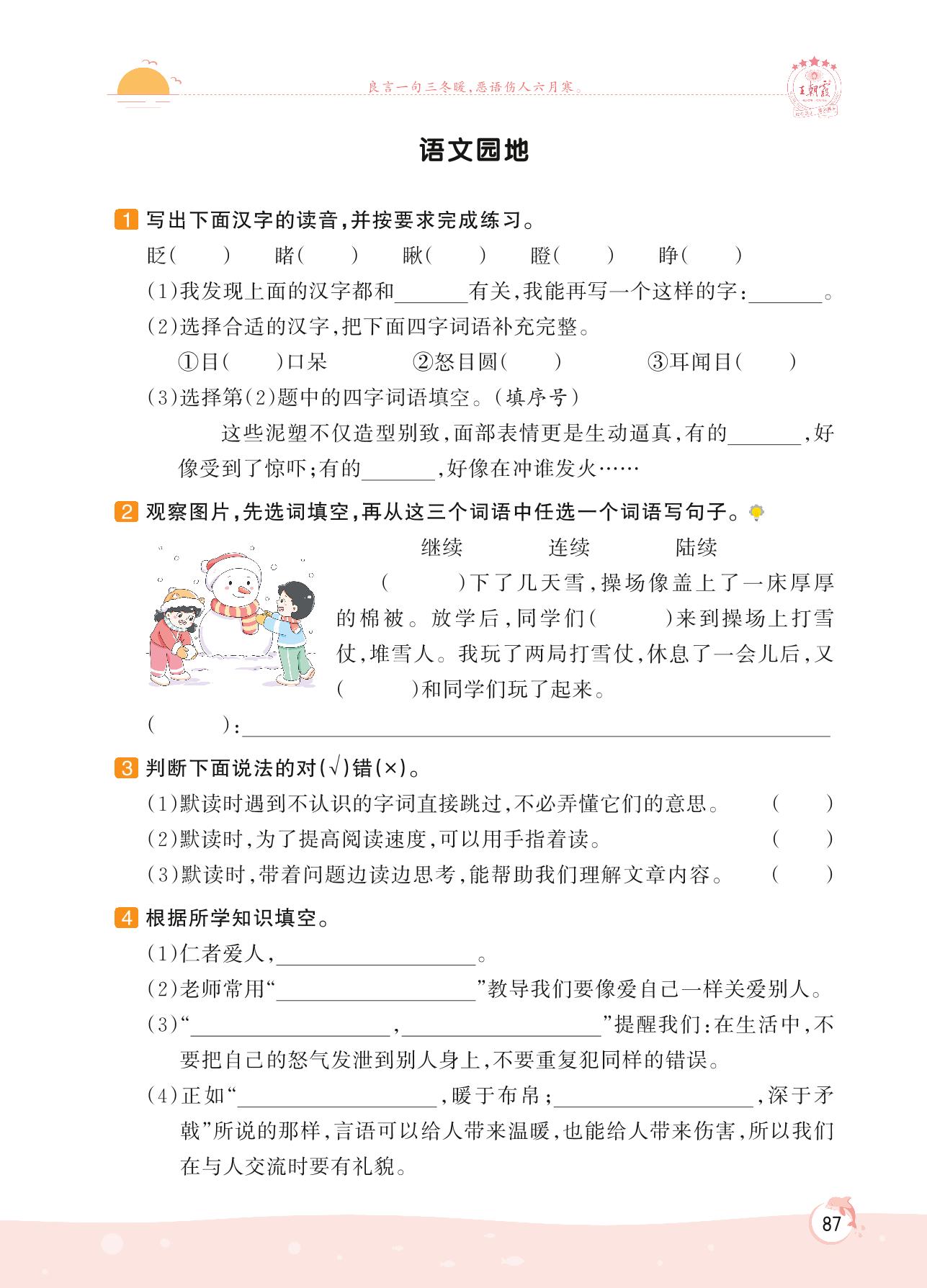 2022上册三年级语文人教版 第八单元 美好品质——语文园地