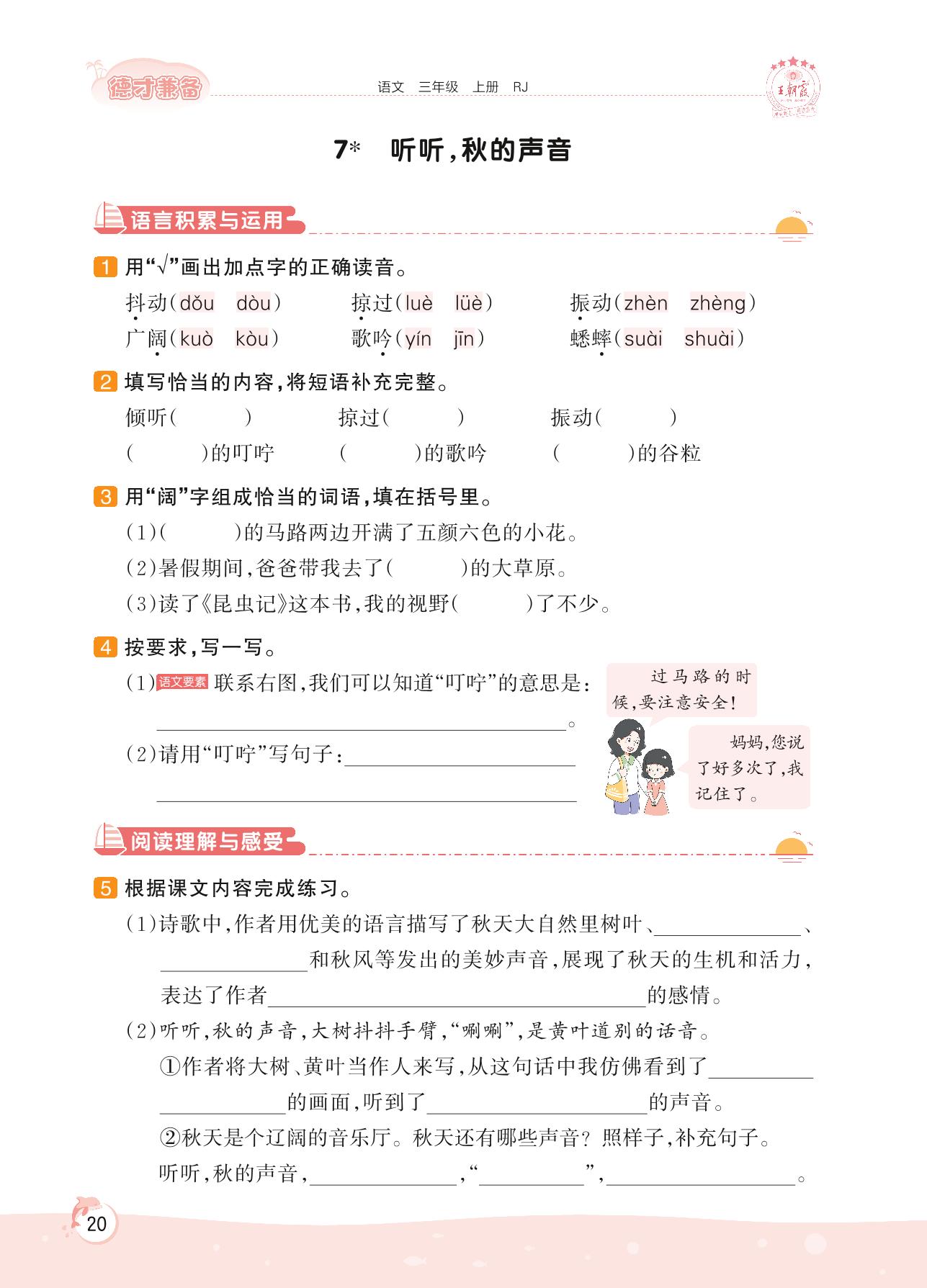 2022上册三年级语文人教版 第二单元 金秋时节——7 听听,秋的声音