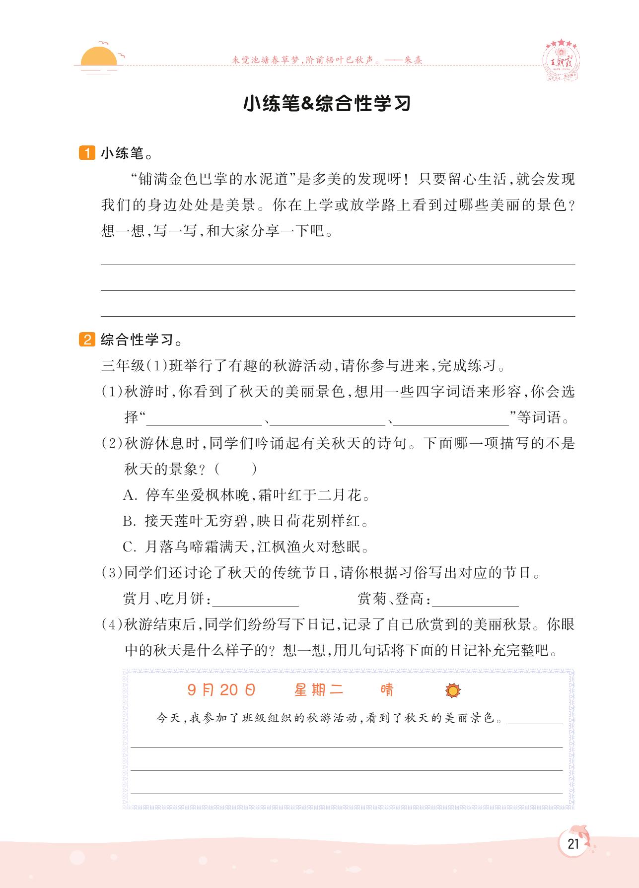 2022上册三年级语文人教版 第二单元 金秋时节——小练笔&综合性学习(语用提升)