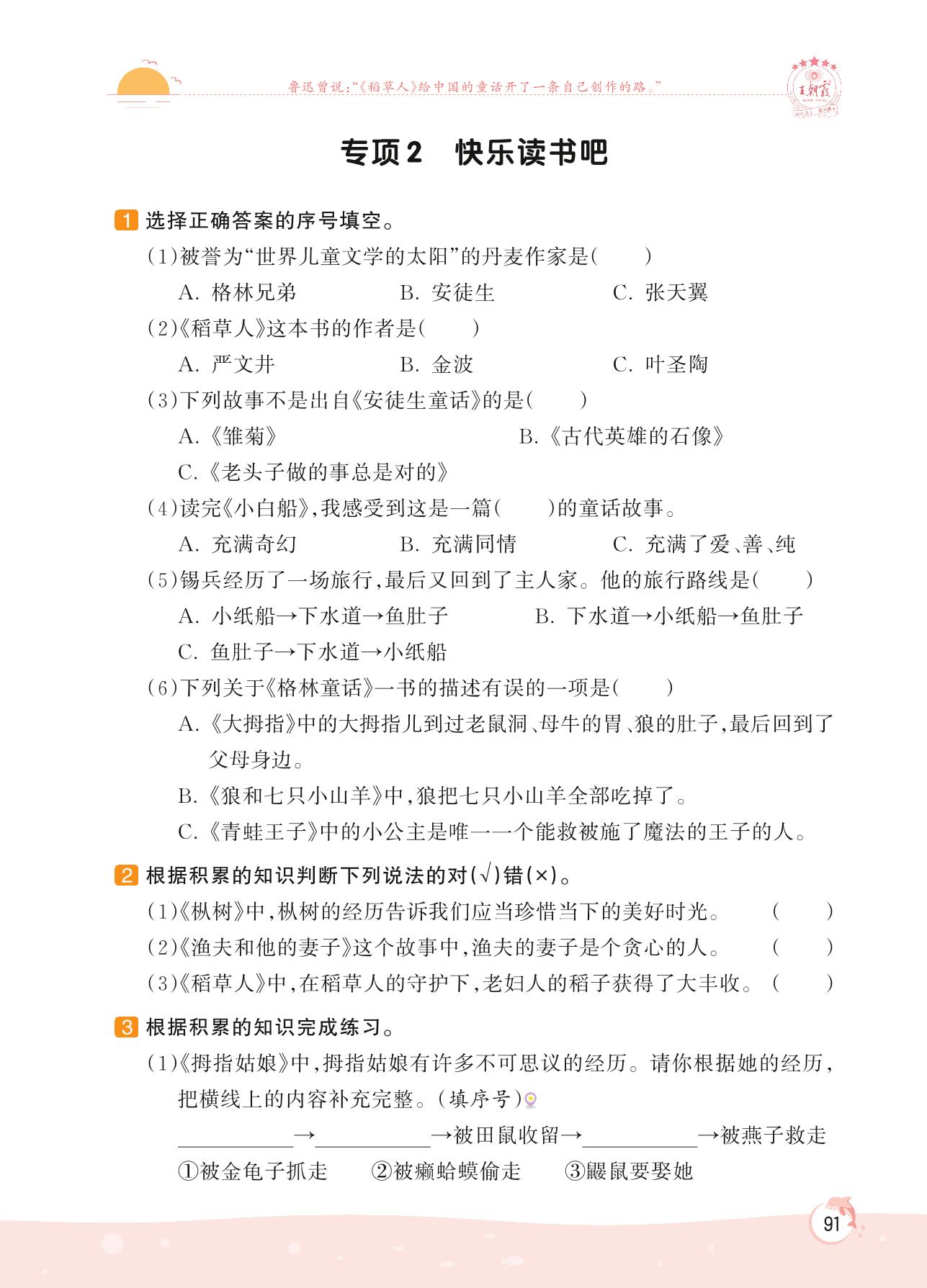 2022上册三年级语文人教版 新颖题视野 专项训练——专项2 快乐读书吧
