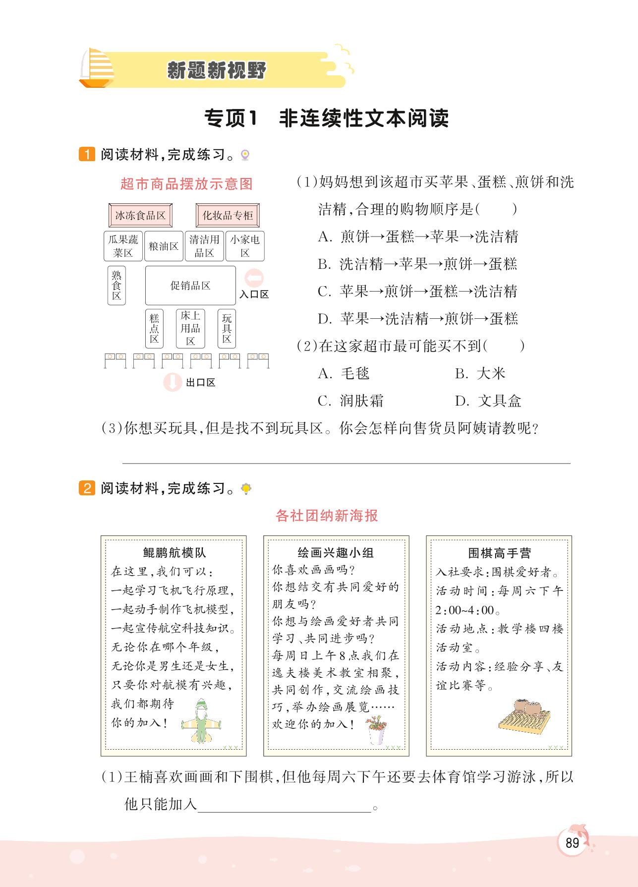 2022上册三年级语文人教版 新颖题视野 专项训练——专项1 非连续性文本阅读