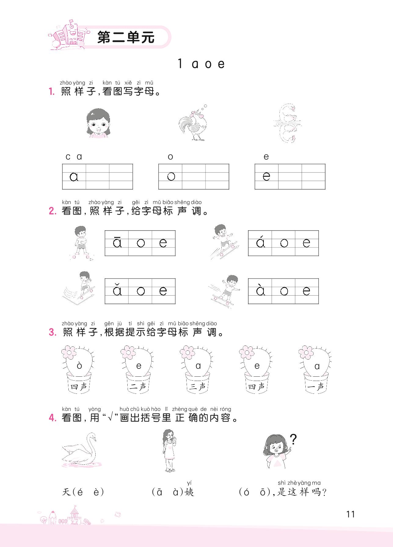 2022上册一年级语文人教版 第二单元 汉语拼音——1 ɑ o e