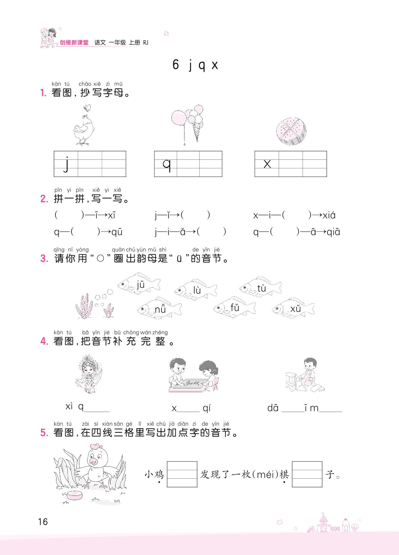 2022上册一年级语文人教版 第二单元 汉语拼音——6 j q x