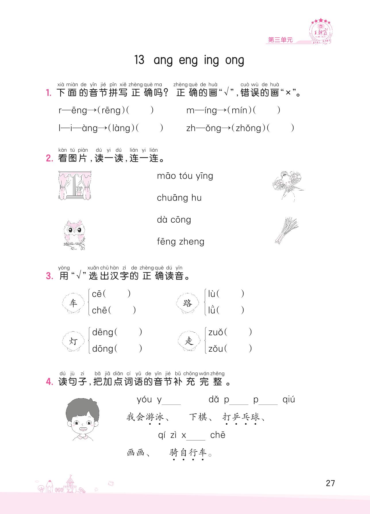 2022上册一年级语文人教版 第三单元 汉语拼音——13 ɑng eng ing ong
