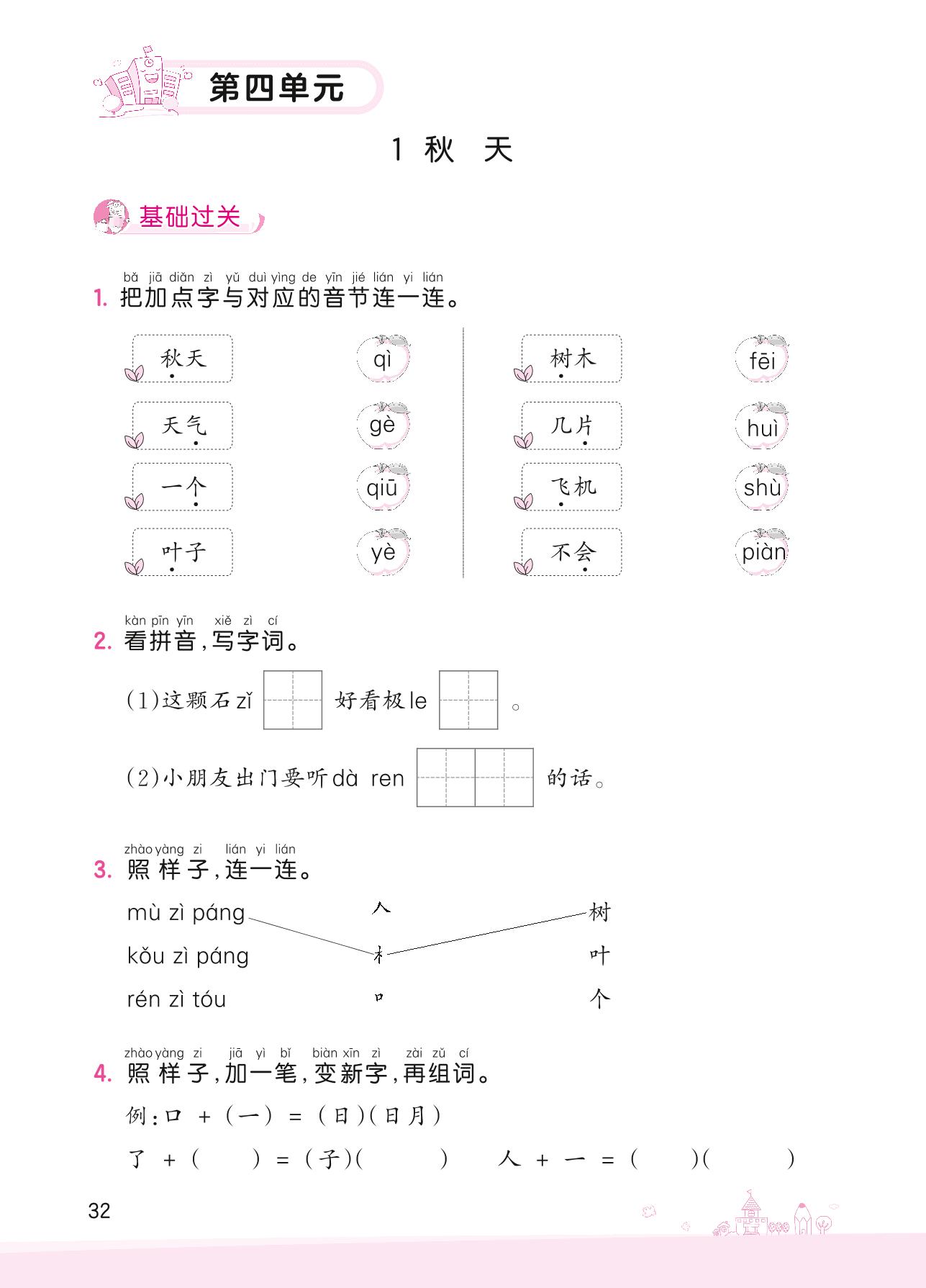 2022上册一年级语文人教版 第四单元 课文——1 秋天