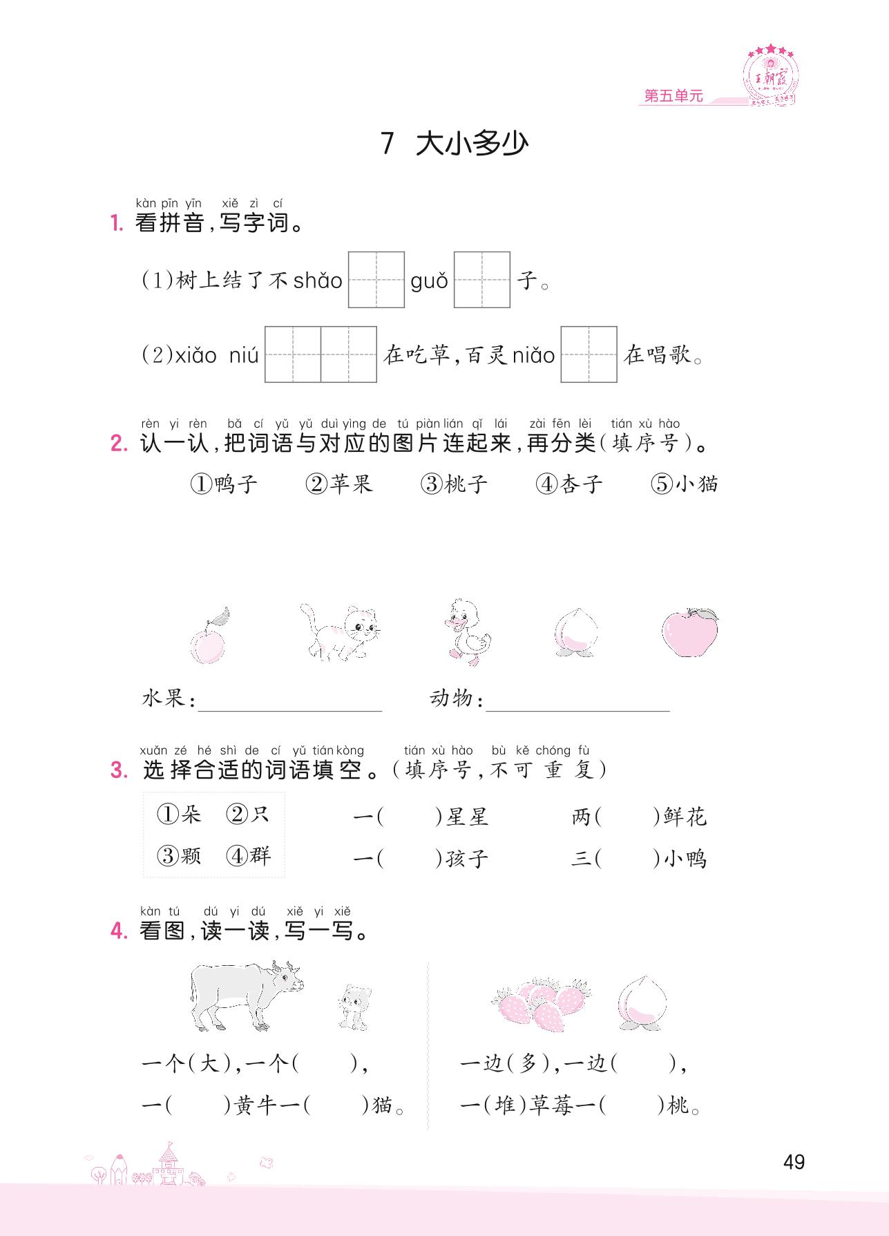 2022上册一年级语文人教版 第五单元 识字——7 大小多少