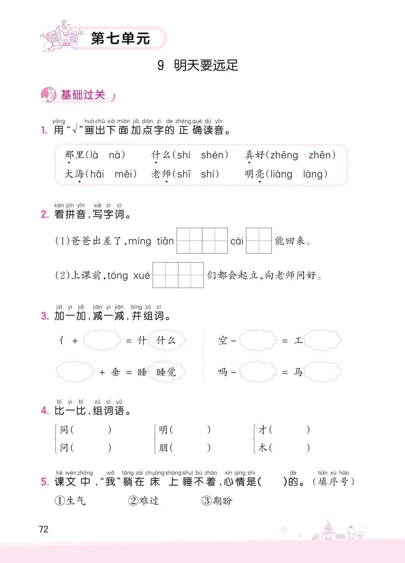 2022上册一年级语文人教版 第七单元 课文——9 明天要远足