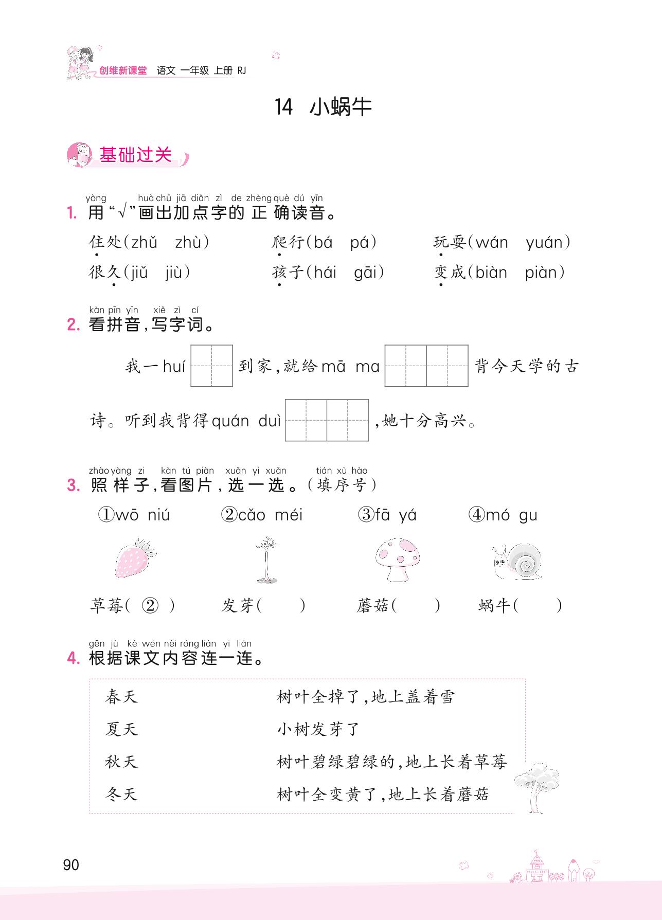 2022上册一年级语文人教版 第八单元——14 小蜗牛