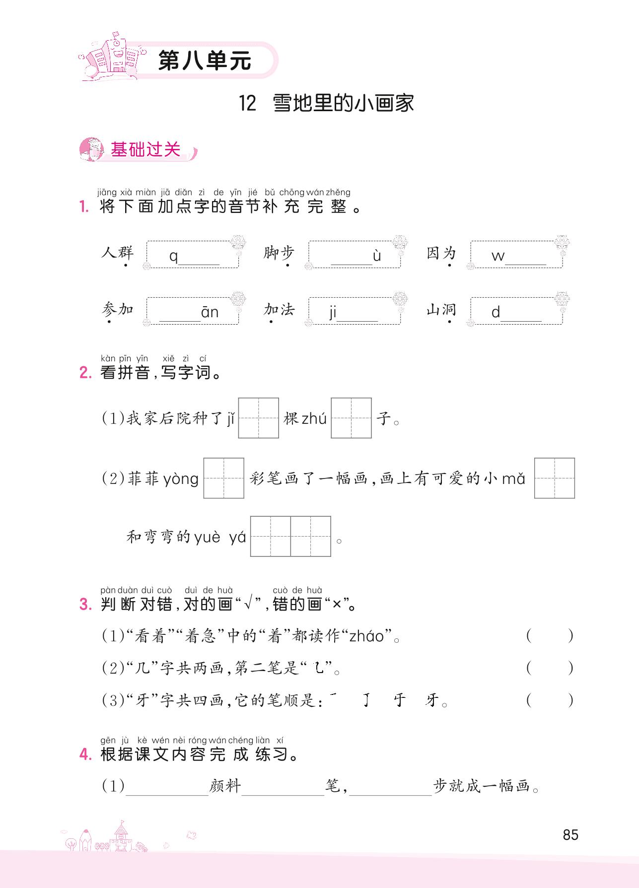 2022上册一年级语文人教版 第八单元——12 雪地里的小画家