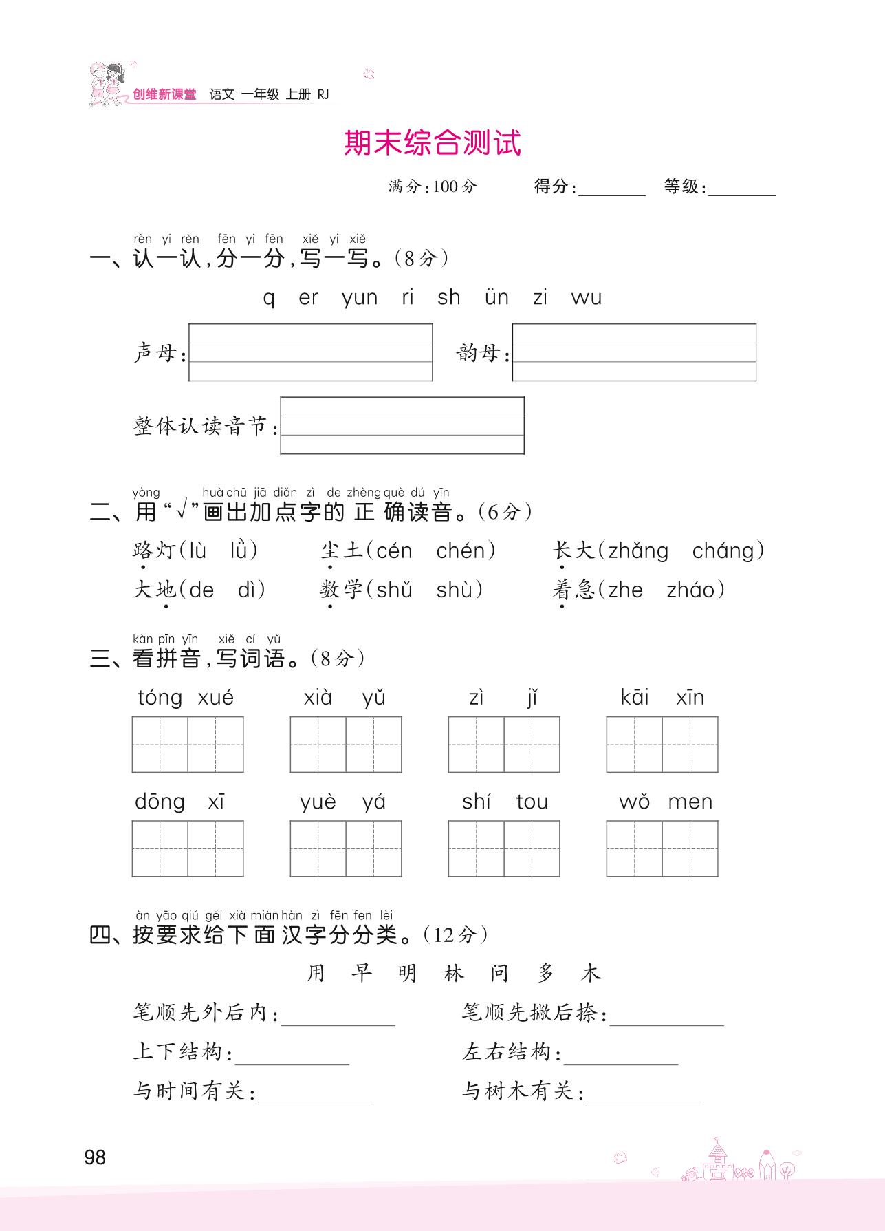 2022上册一年级语文人教版 期末综合测试