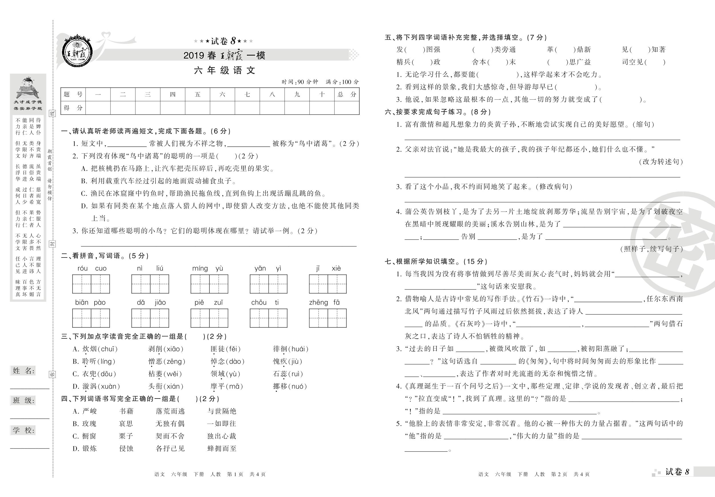 王朝霞期末模拟卷六年级下册语文(人教版)_R21080253603【8】