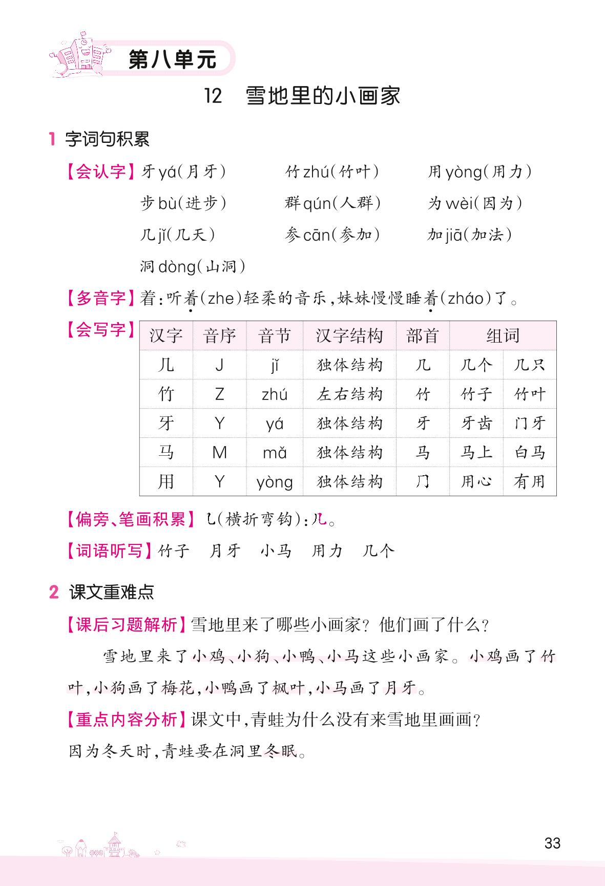 2022上册一年级语文人教版 第八单元——12 雪地里的小画家_R220907173557885
